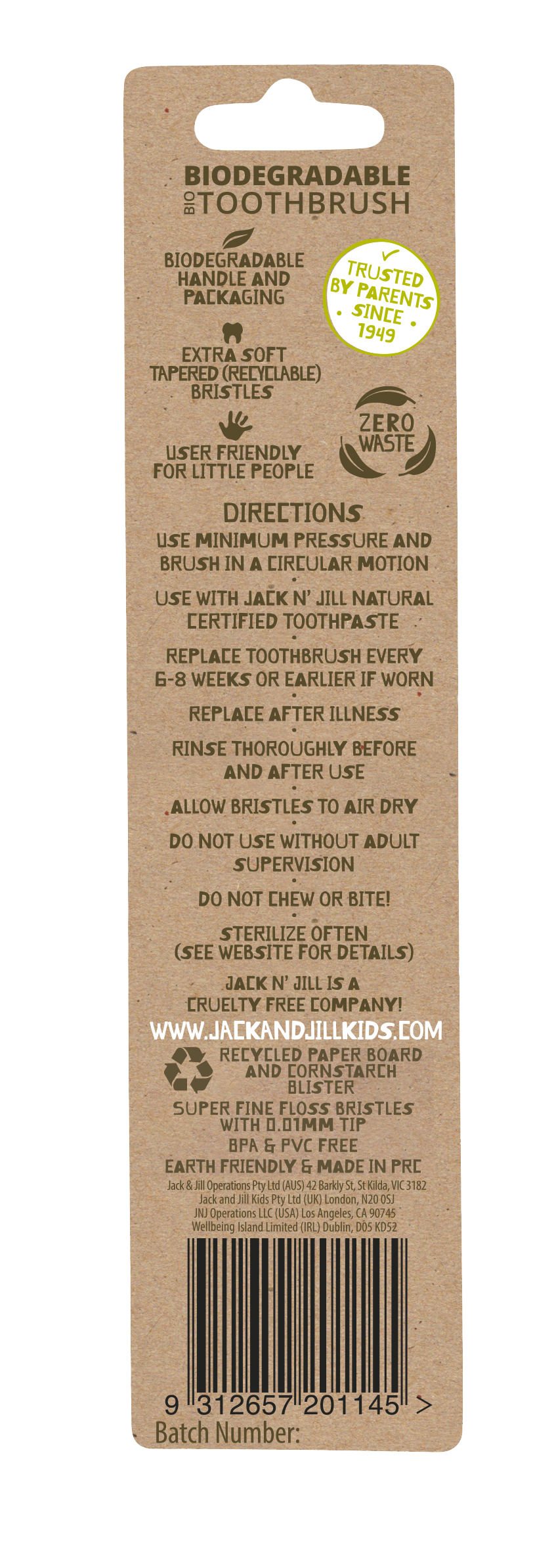 Jack & Jill çocuk diş fırçalarının gövdesi tamemen mısır koçanından titizlikle imal edilmekte olup doğada tamamen çözünür yapısı ile insana ve çevreye saygılıdır.