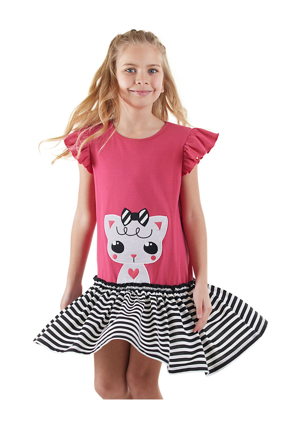 Pamuklu penye kumaştan kız çocuk, pembe elbise.