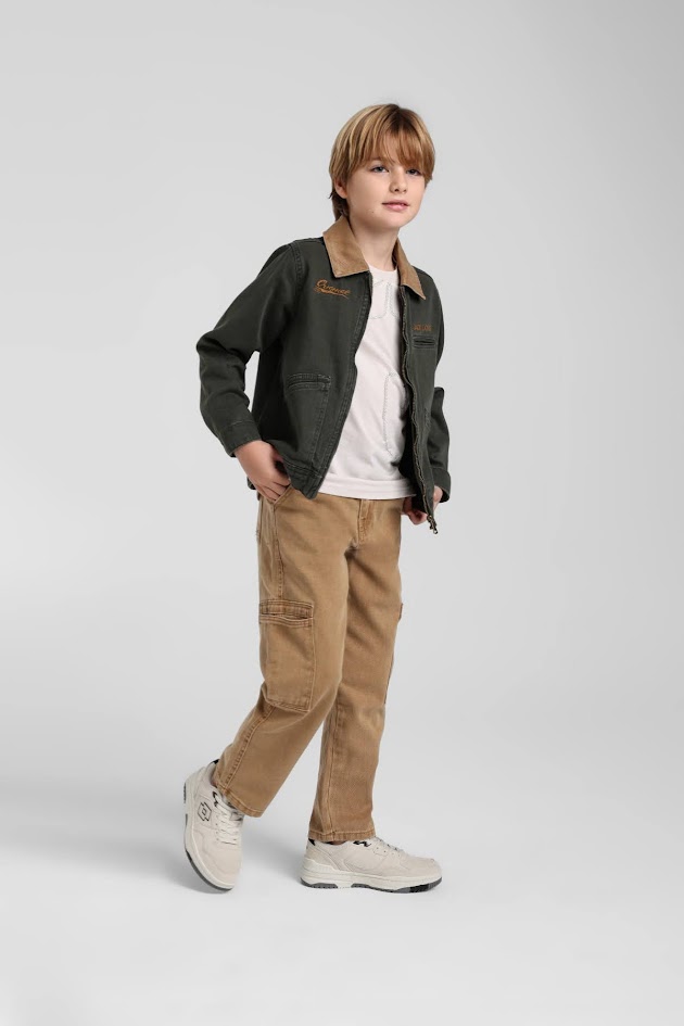 Yaka kısmı kahverengi haki ceket günlük kullanımda şıklık gösterir.