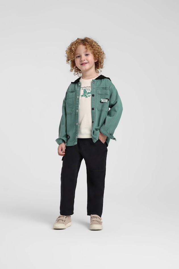 Yeşil Gömlek Siyah Kapüşonlu Gömlek 12 Ay-5 Yaş