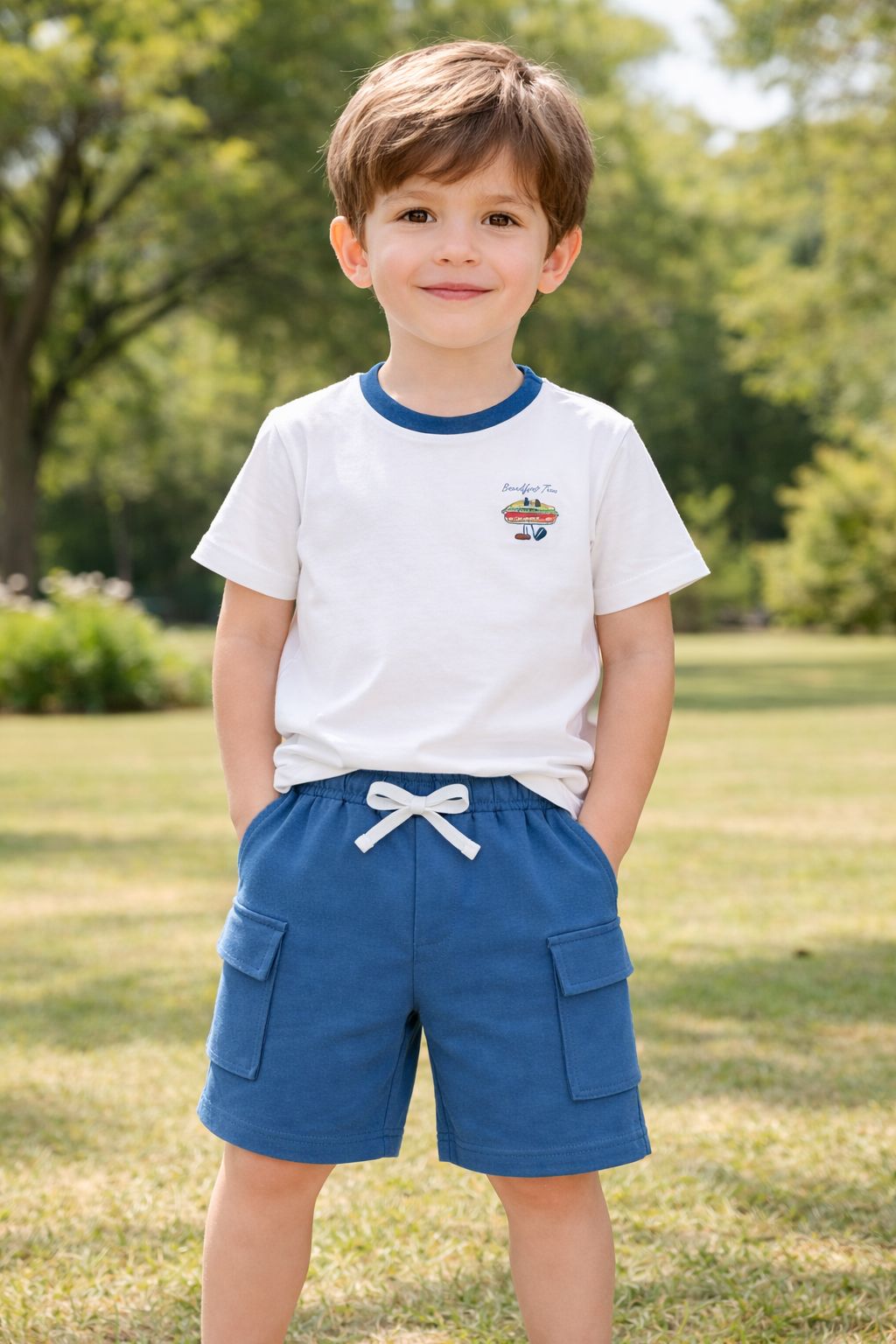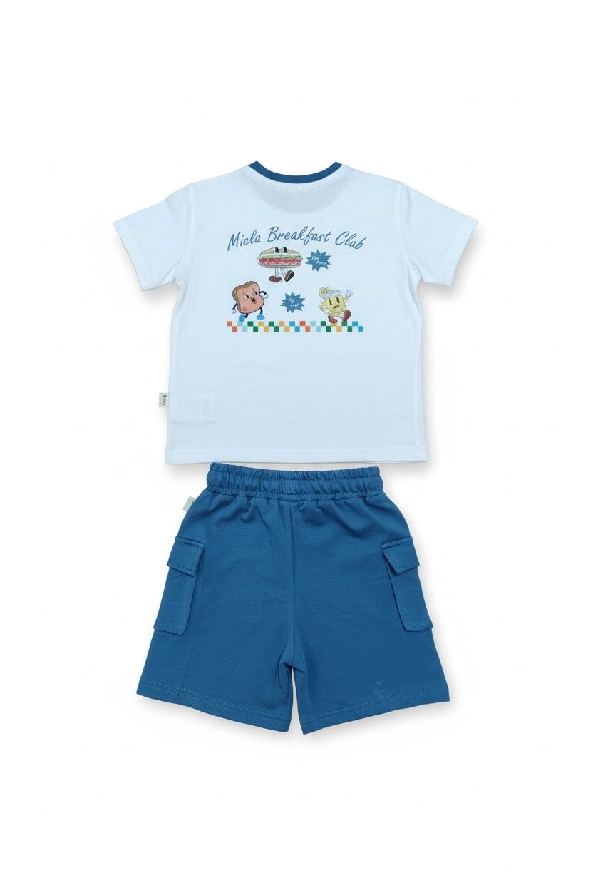 Miela Kids’in kahvaltı kahramanlarından ilham alan bu takım, oyun saatlerini, keşifleri ve hareket dolu yaz günlerini destekliyor. Oversize tişört üzerindeki renkli baskılar, çocukların hayal gücünü beslerken, şortun rahat kesimi özgür hareket etmelerini sağlar. Günlük kullanım için hem şık hem konforlu bir seçimdir.