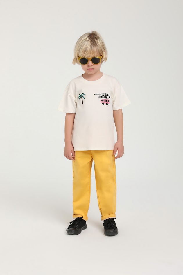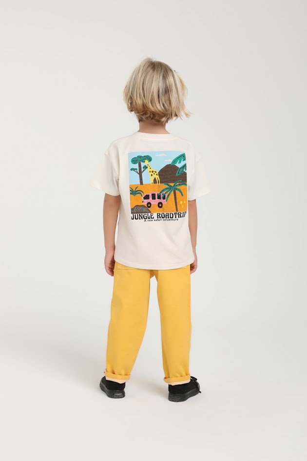 Jungle Roadtrip Yazı Detaylı Ekru Tshirt 1-5 Yaş