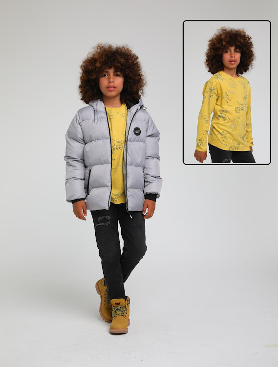 Kapüşonlu Şişme Mont Gri 11-14 Yaş