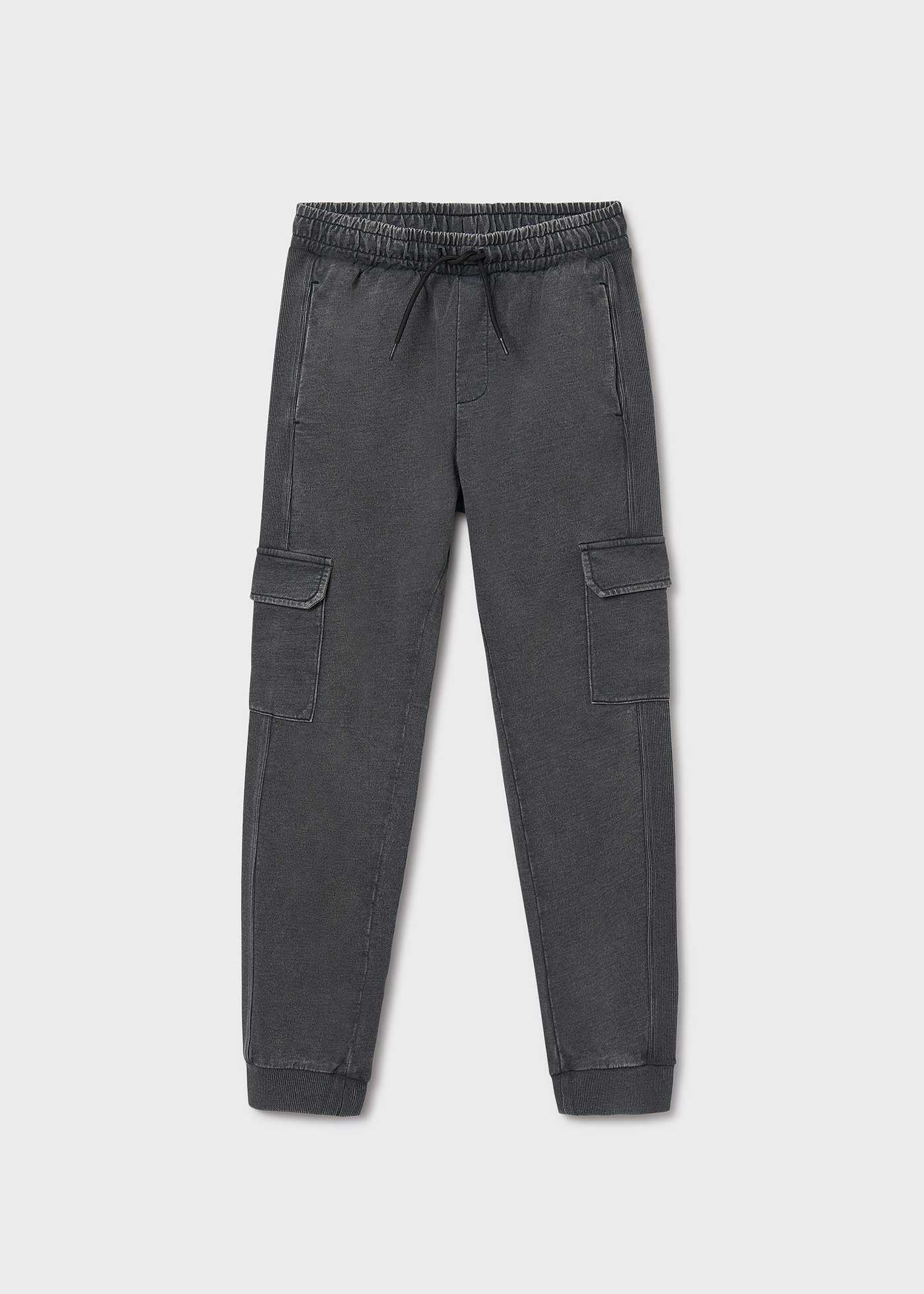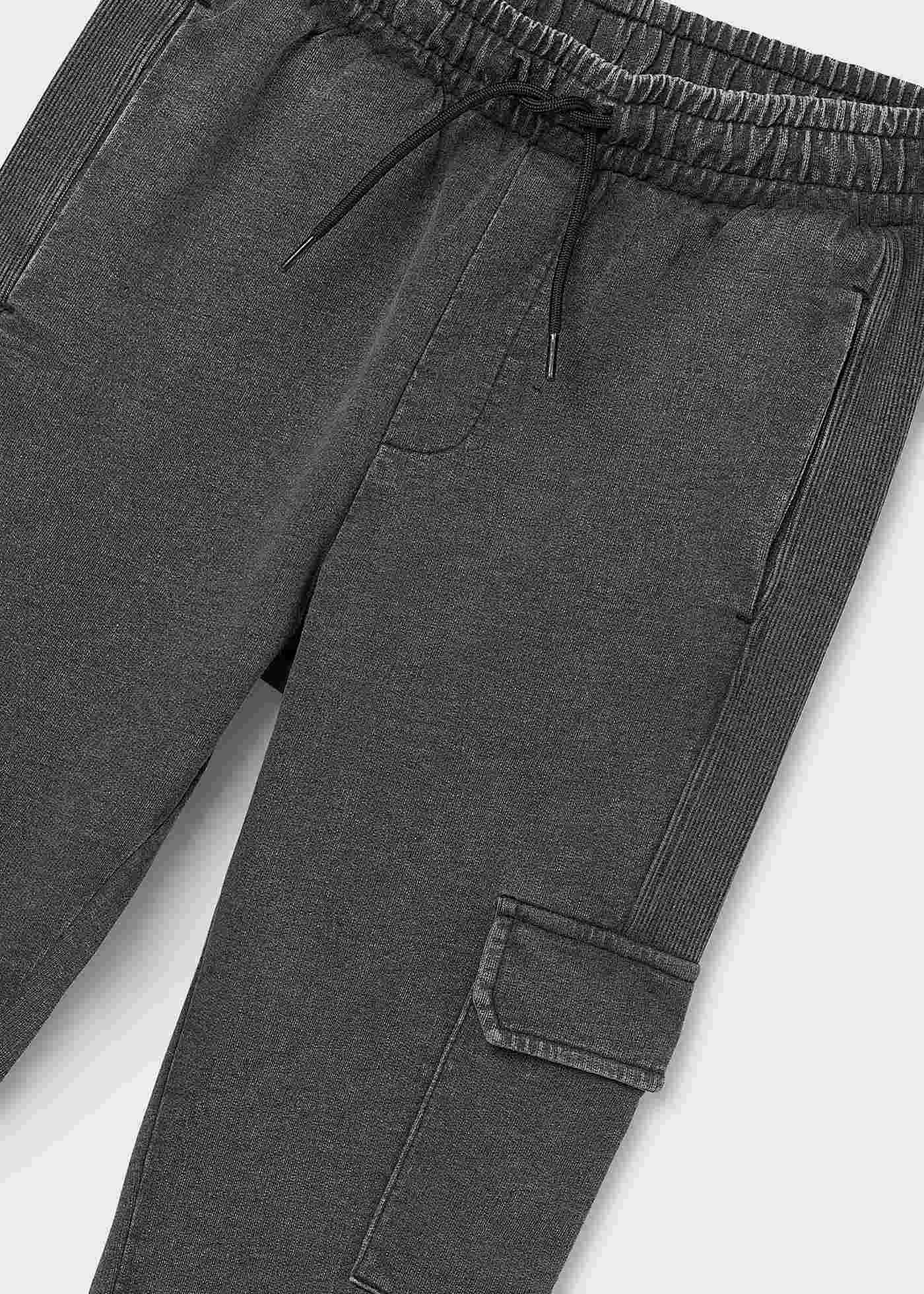 Erkek çocuklar için üst kısmı bol, düşük paça ve paçası normal kesim kargo pantolon. Ayarlanabilir bağcıklı lastikli bel. Daha iyi bir uyum için lastikli paça. Fonksiyonel ön cepler. Yan cepler. Şık tasarım.