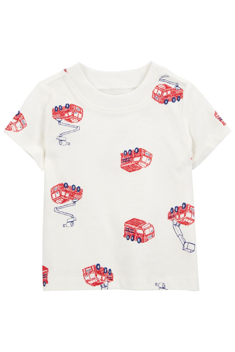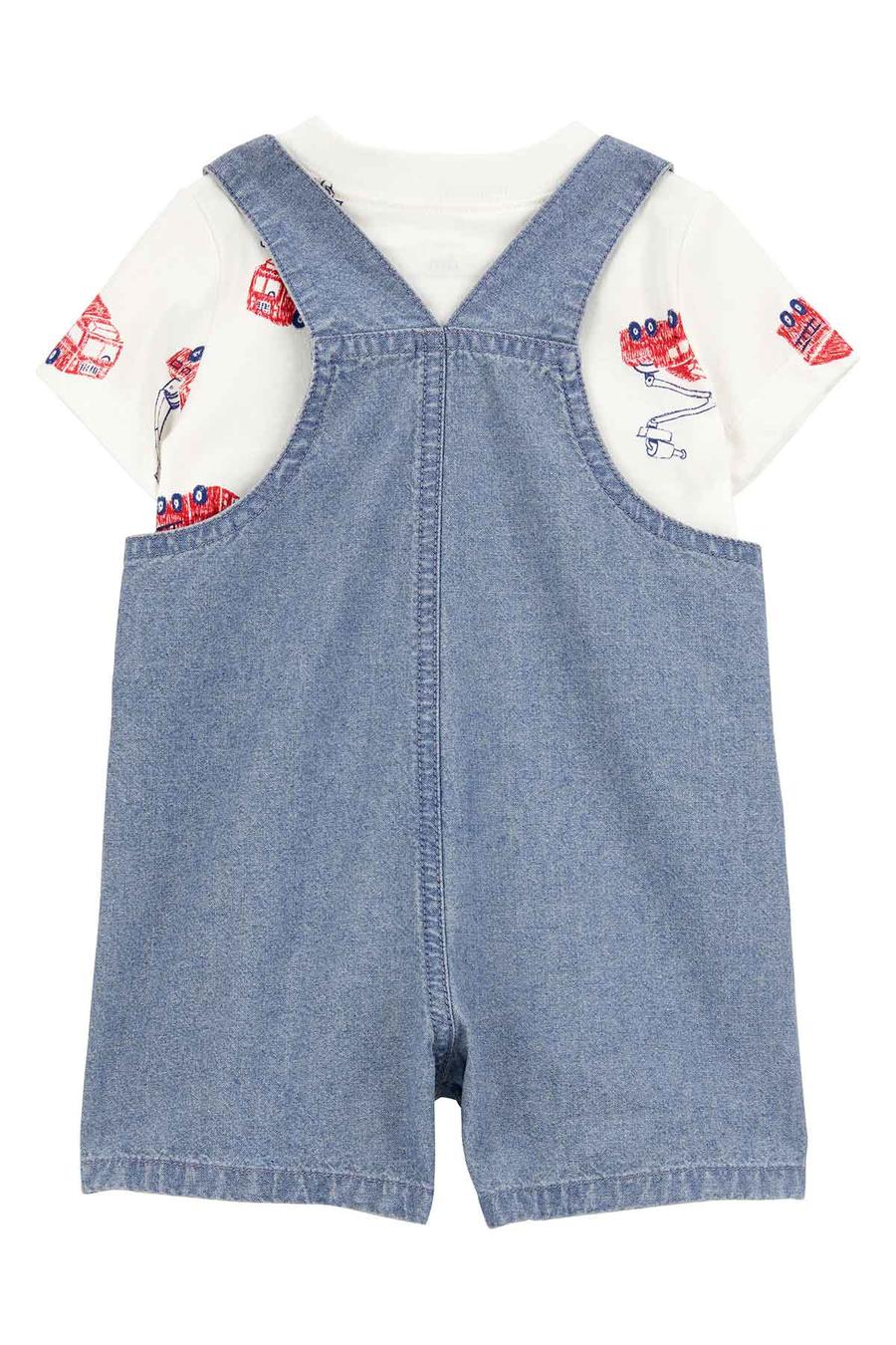 2 Parçalı, İtfaiye Aracı Desenli Tişört ve Bahçıvan Tulumu Seti Yumuşak pamuktan üretilen bu takım, kısa kollu bir tişört ve onunla uyumlu bir bahçıvan tulumu ile tamamlanmıştır.