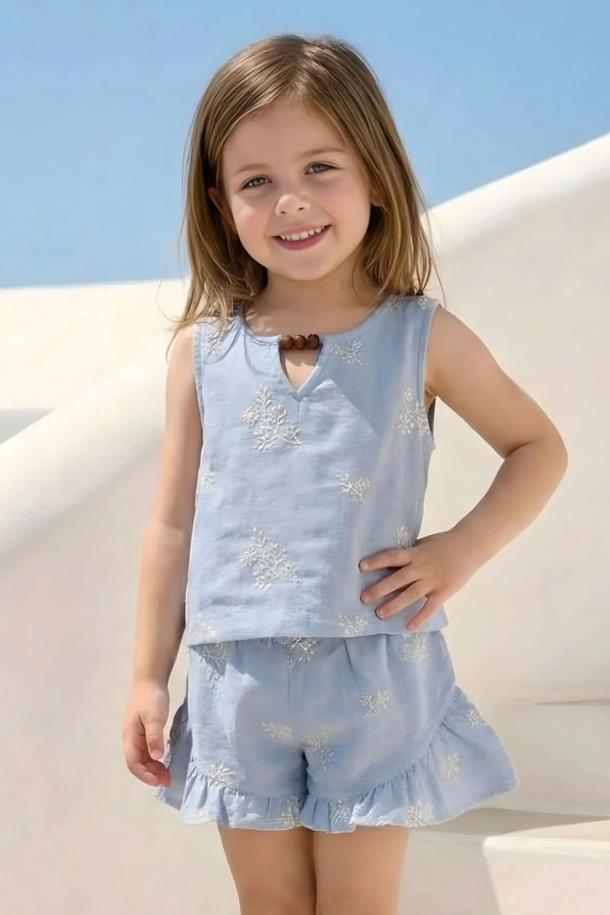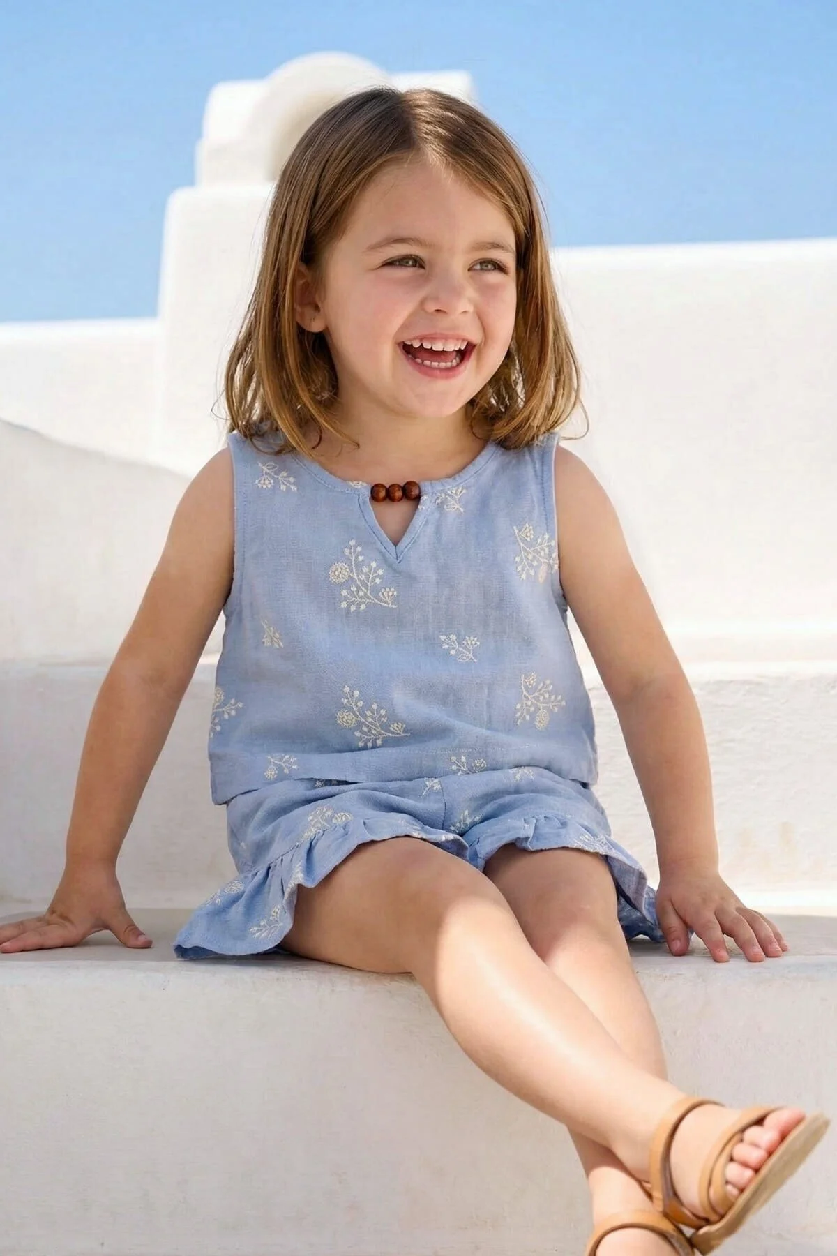Geleneksel nakış sanatını modern çocuk modasıyla buluşturan bu 2'li Mavi Takım, bluz üzerindeki ince işçiliği ve konforlu şortuyla öne çıkıyor.