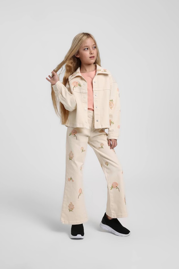 Çiçek İşlemeli Krem Pantolon Ceket Takım 4-9 Yaş