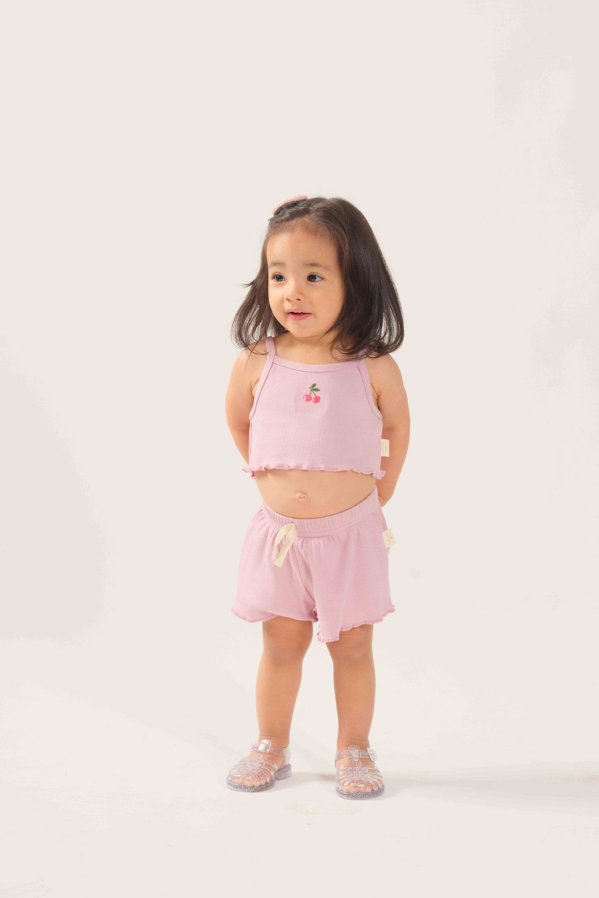 Takım içeriğinde iki ürün mevcuttur: İp askılı crop üst ve şort