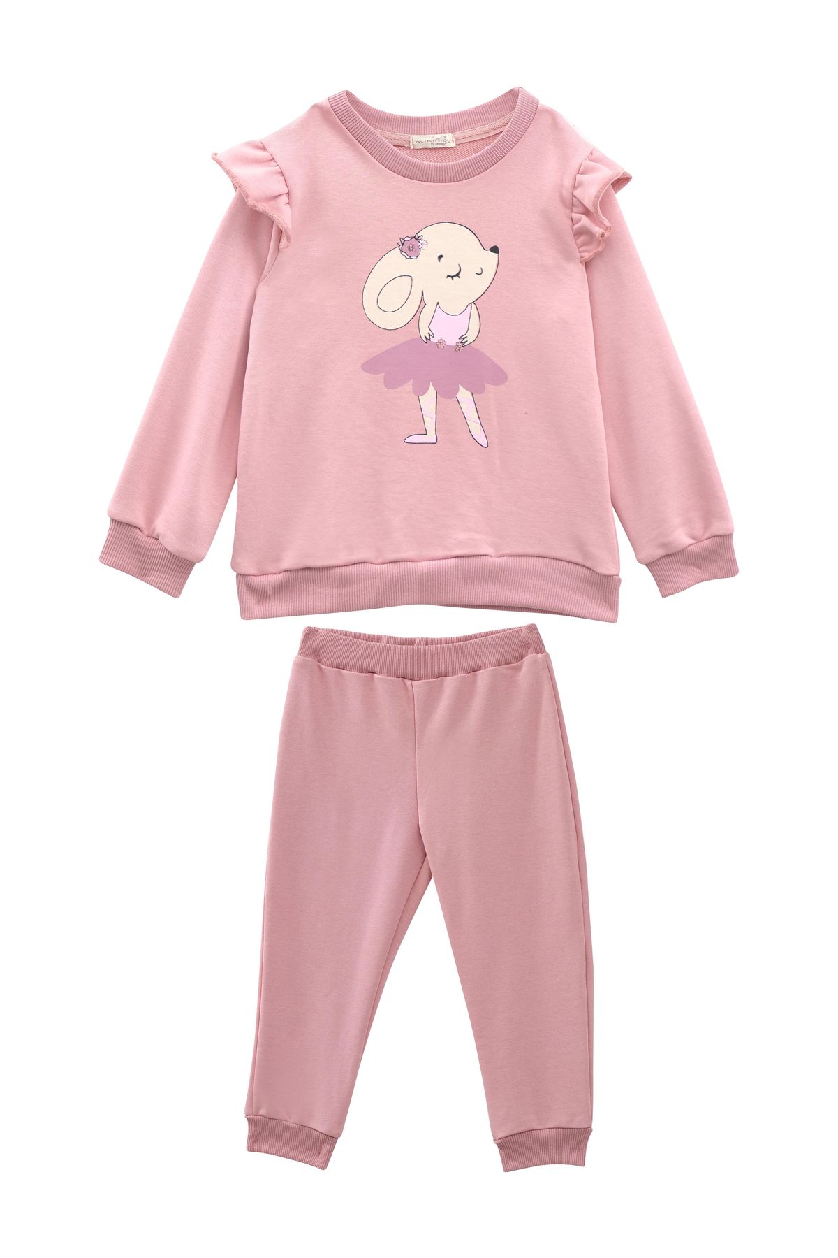 %100 Pamuk;Bisiklet yaka omuzları fırfır detaylı kız bebek sweatshirt ve eşofman altı 2li takım,2 iplik kumaştan üretilmiştir.