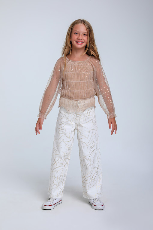 Gold Puantiyeli Tüllü Bluz 5-9 Yaş