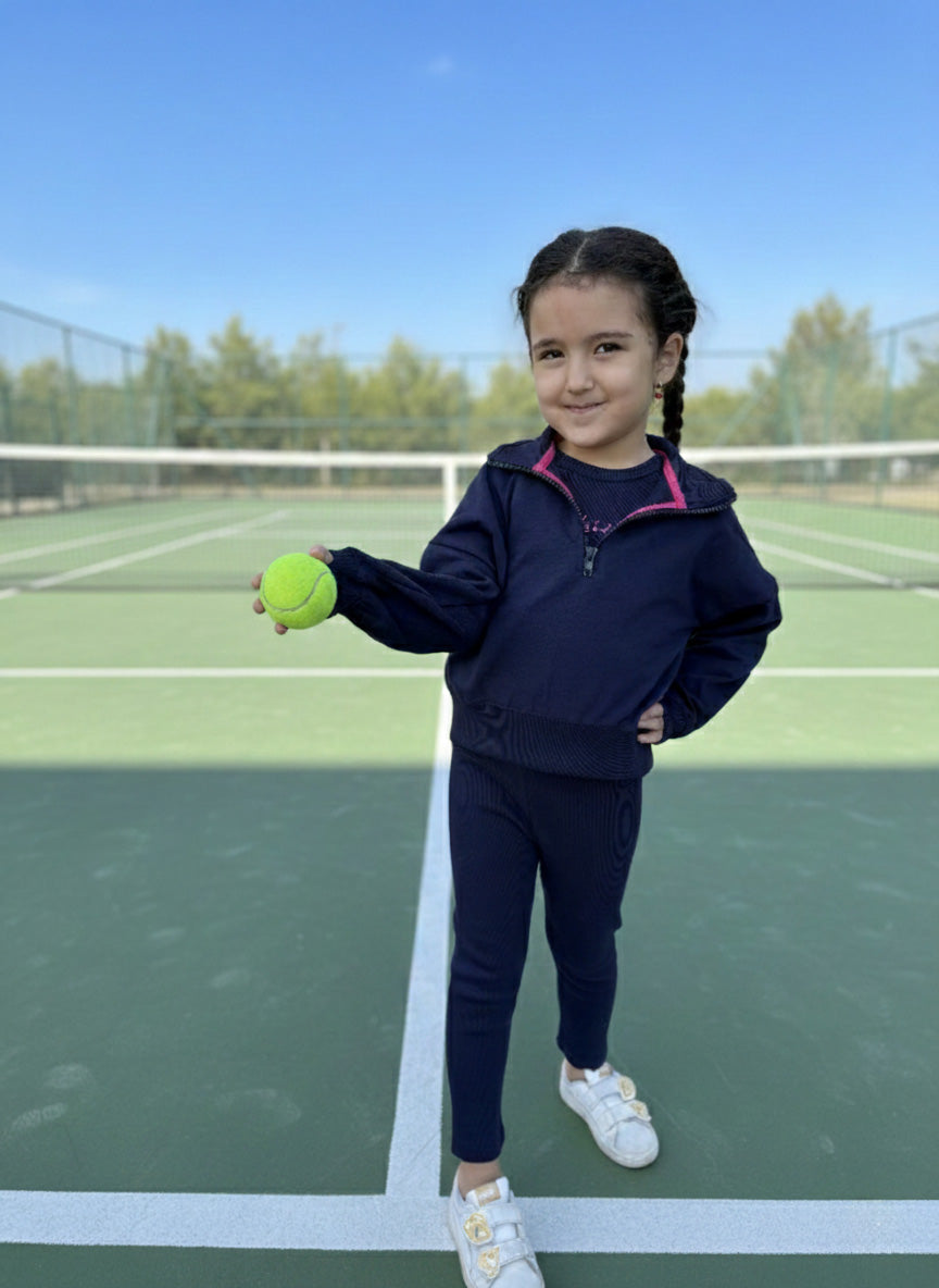 Miniklerin spor ve günlük stiline konfor katan Tennis Club Sweatshirt, Ribana Tayt ve Ribana Büstiyerden oluşan Tennis Club Çocuk Takımı sizlerle.