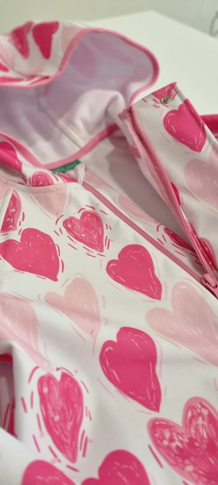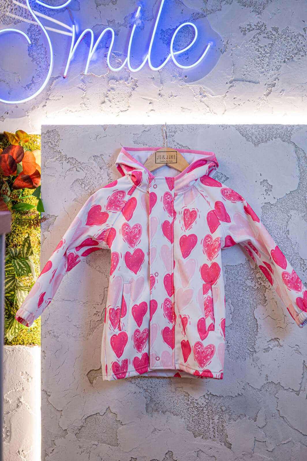 Su İtici Kalp Baskılı Softshell Ceket, kız çocuklarınızın hem şık hem de korunaklı bir şekilde gezmesi için tasarlandı.