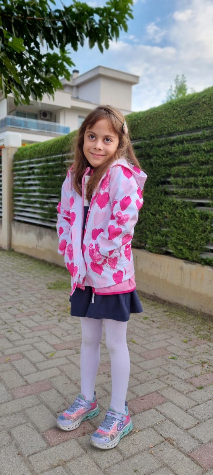 Su itici özelliği ve iç kumaşı softshell sayesinde yağmurlu havalarda çocuklarınızın kuru kalmasını sağlarken, kalp baskılı tasarımıyla da şık bir görünüm sunar.