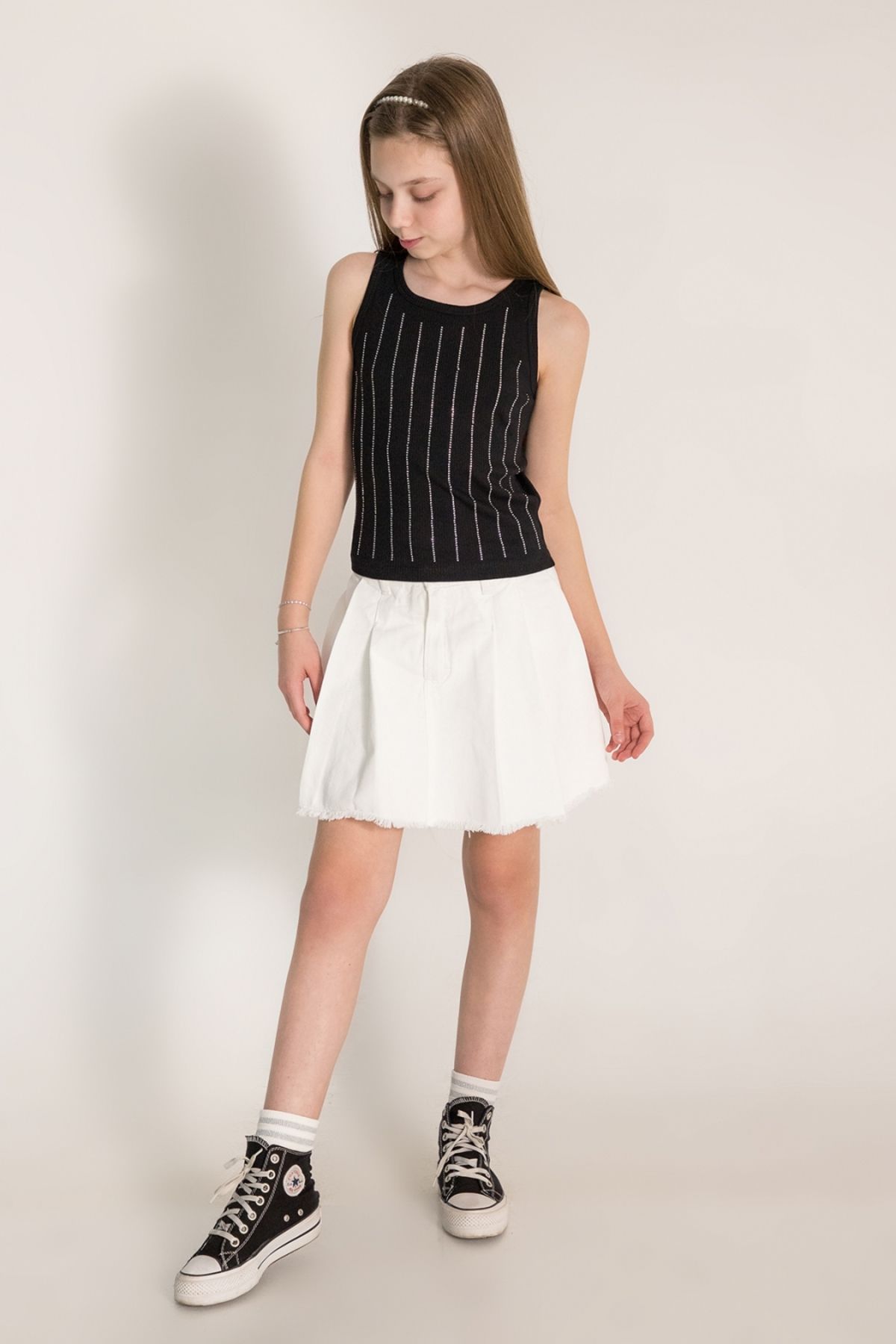Young koleksiyonunun dinamik ruhunu yansıtan bu şort etek, genç tarzını benimseyen çocuklar için idealdir.