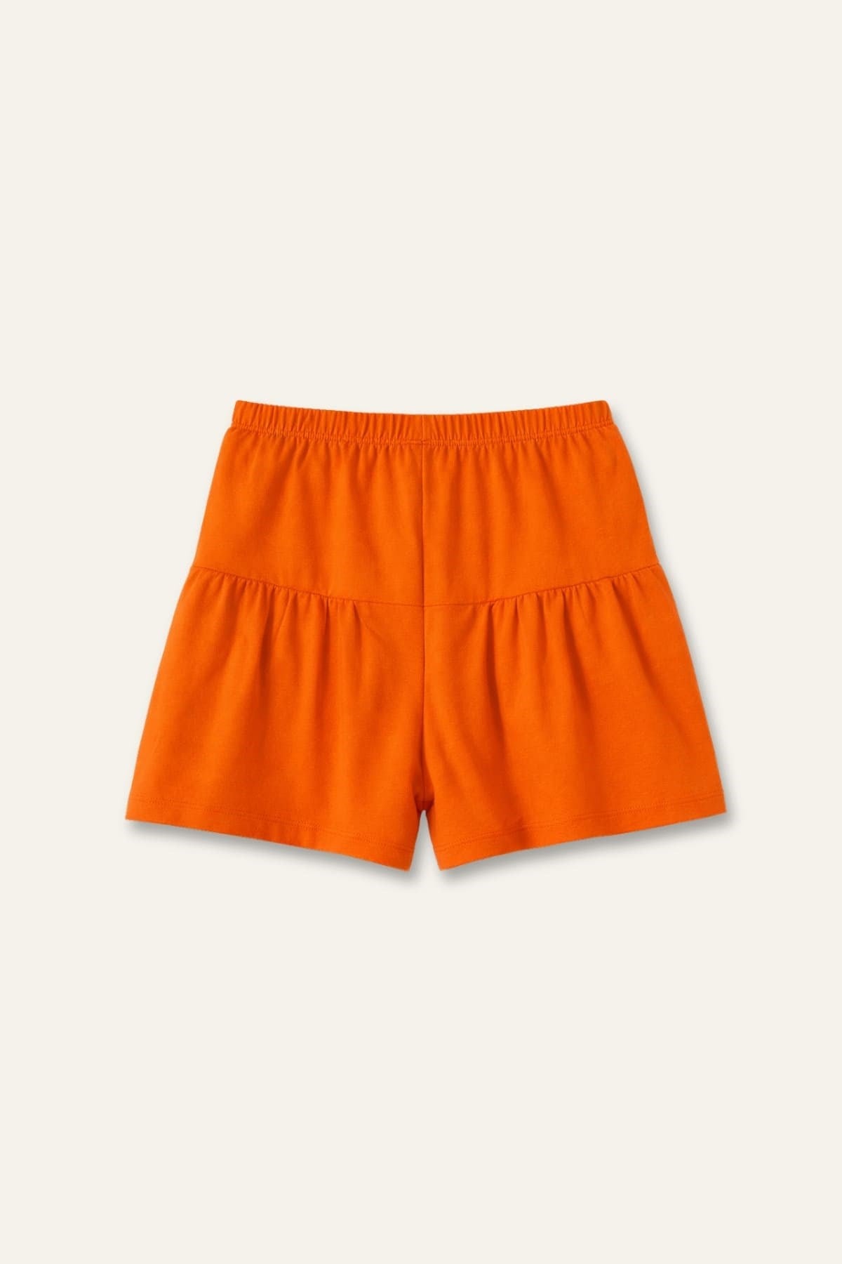Minik prenseslerin yaz gardırobuna canlılık katacak Turuncu Fırfırlı Örme Şort, hareket özgürlüğü ile zarafeti buluşturuyor.