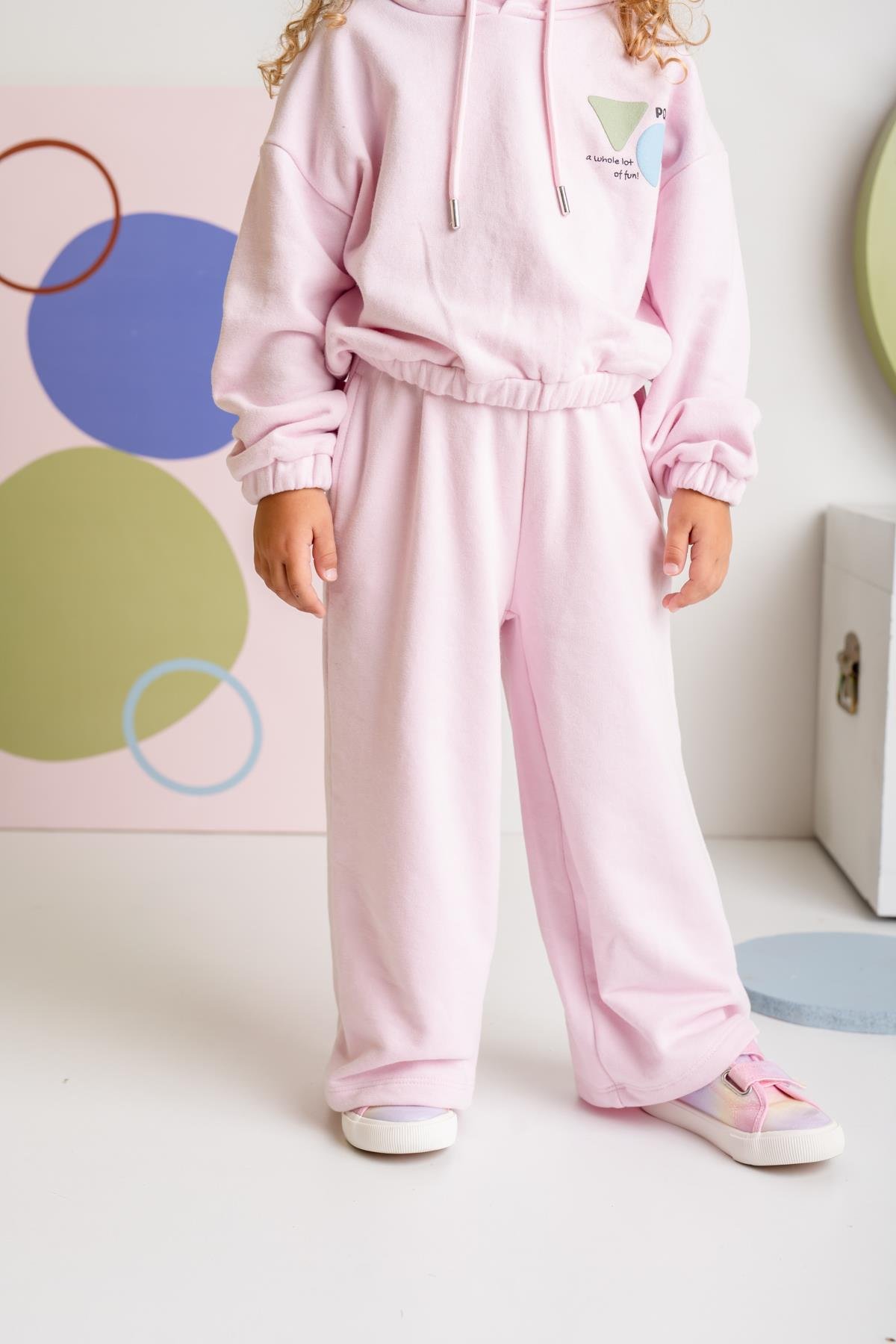 Rahat kalıbı ve modern görünümüyle öne çıkan pembe wide leg çocuk pantolon, hem günlük kombinlerde hem de özel günlerde kullanılabilecek zamansız bir parçadır.
