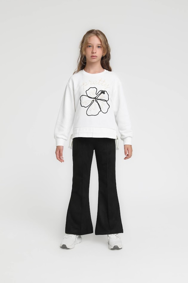 İspanyol Paça Nubuk Siyah Tayt 5-14 Yaş