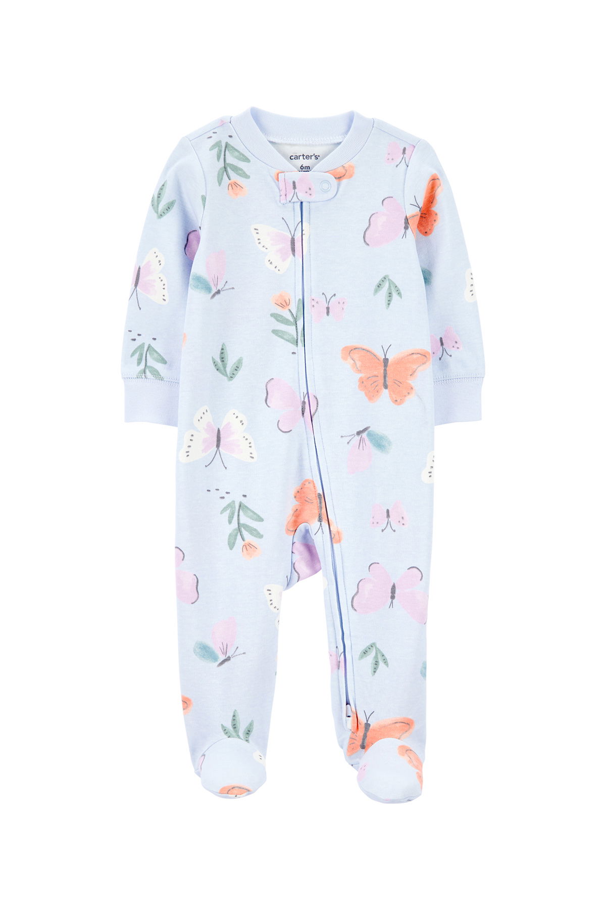 Çift Yönlü Fermuarlı, Kelebek Desenli, Pamuklu Uyku ve Oyun Tulumu
