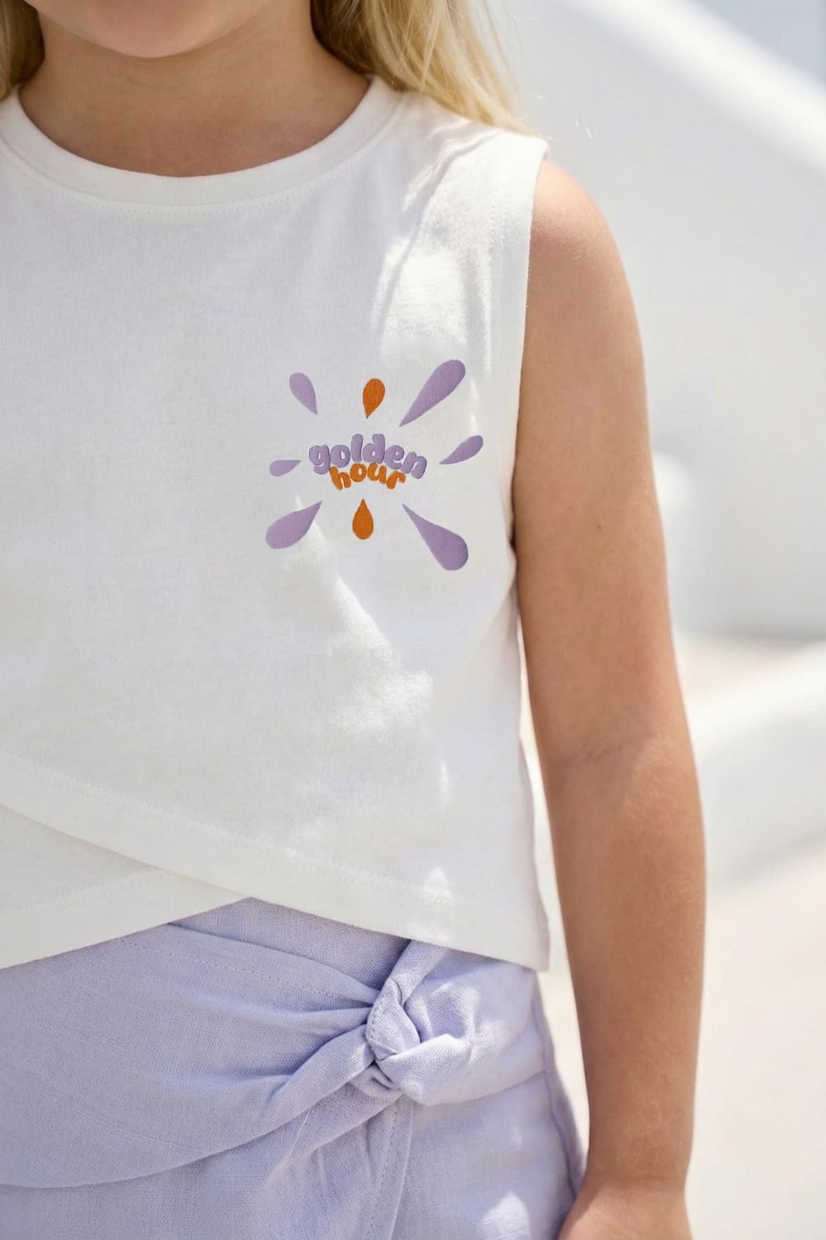 Göbeği bağlamalı ve kollarında detayı bulunan bu tshirt tüm yazı rahat ve şık geçirmenize yardımcı minik prenseslerin bayılacağı tarzda bir tshirt.