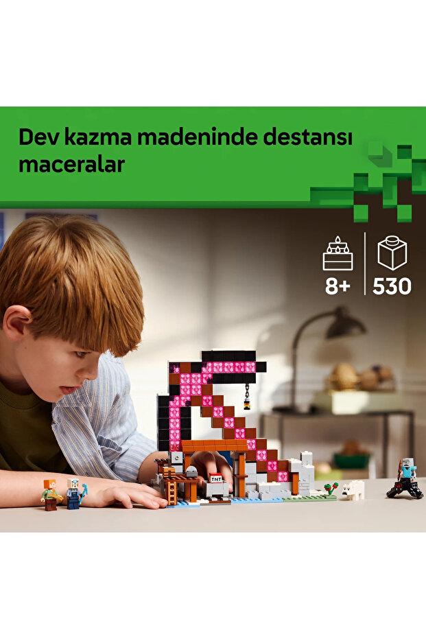 Patlayıcı aksiyon ve yaratıcı yapım deneyimini bir araya getiren LEGO Minecraft Kazma Madeni seti, 8 yaş ve üzeri çocukları Minecraft’ın yeraltı maceralarına davet eder.