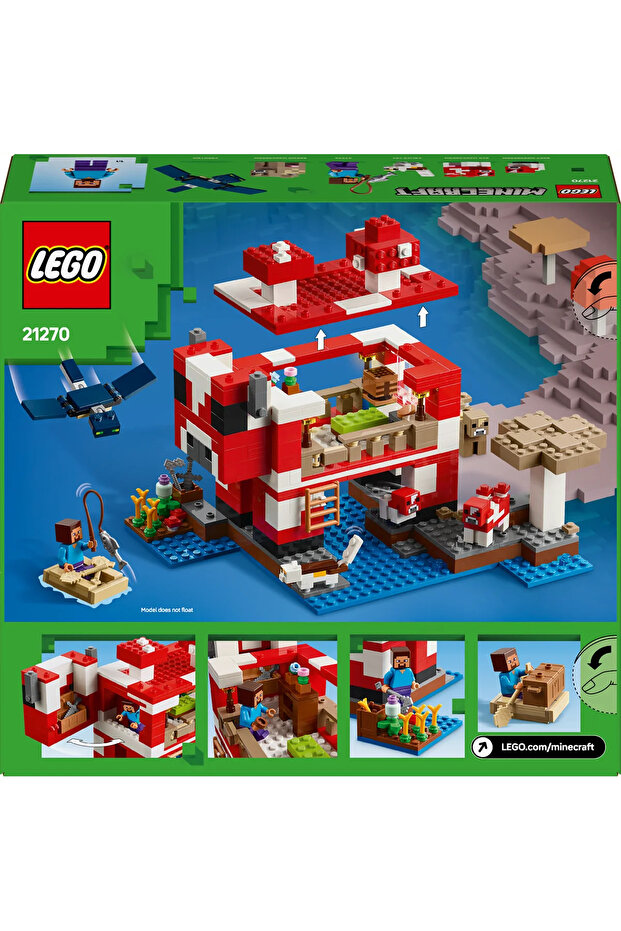 Eğlenceli LEGO® Minecraft oyuncağı, mantar adasında geçer ve popüler karakter Steve'in yanı sıra, kırmızı bir mantar, yavru kırmızı mooshroom, calico kedi ve düşman uçan fantom oyuncak figürleri içerir.