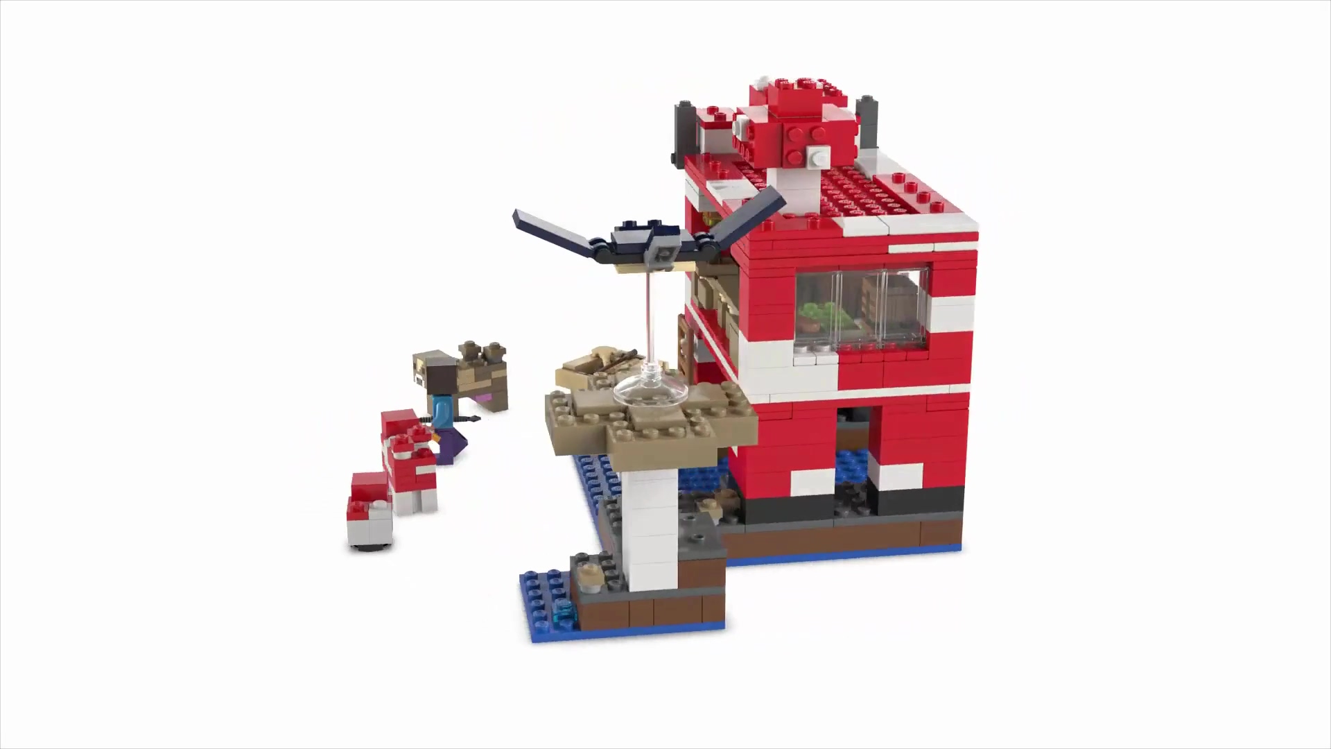 Minecraft Moshroom Evi oyuncağı, oyuncak ev yapmayı, hayvanlarla ilgilenmeyi, ve ara sıra hava saldırılarını savuşturmayı seven Minecraft oyuncuları için mükemmel bir yatratıcı oyuncak seçimdir!