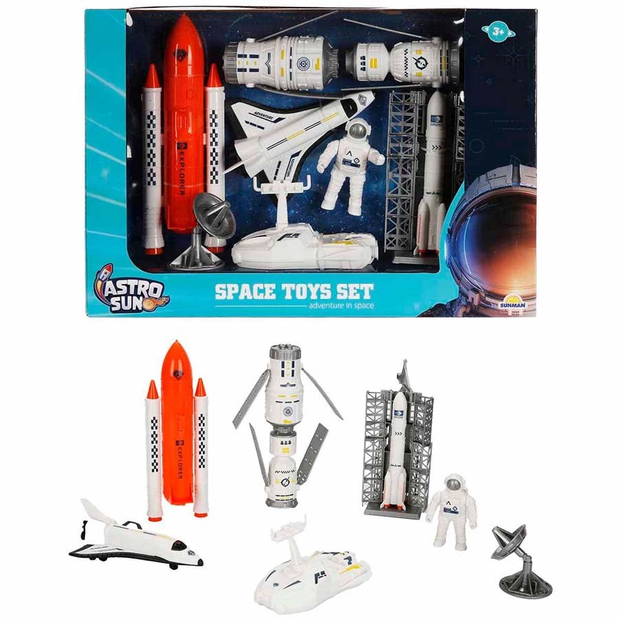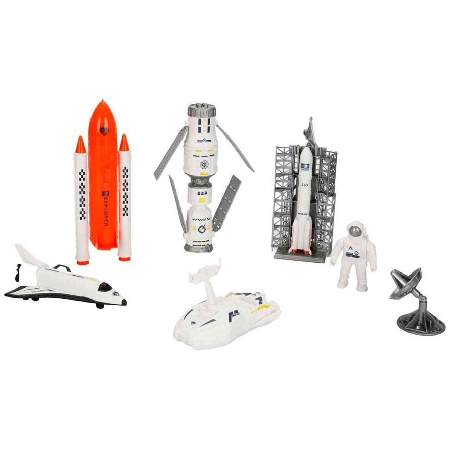 Uzay Mekiği Seti içerisinde; 2 adet uzay roketi, 2 adet uydu, uzay mekiği, astronot figürü, keşif aracı ve anten yer almaktadır.