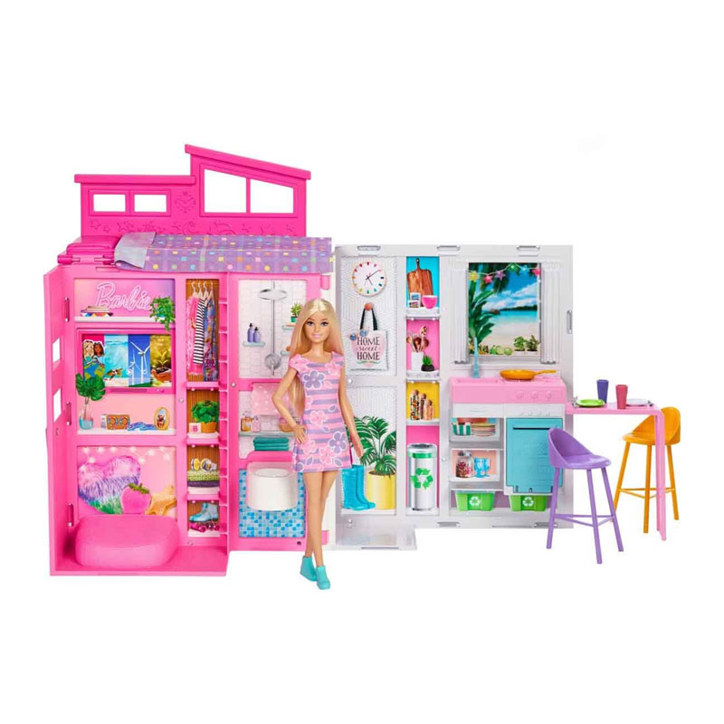 Barbie Portatif Tatil Evi Bebek ve Oyun Seti, 3 yaş ve üzeri çocuklar için harika bir hediyedir.