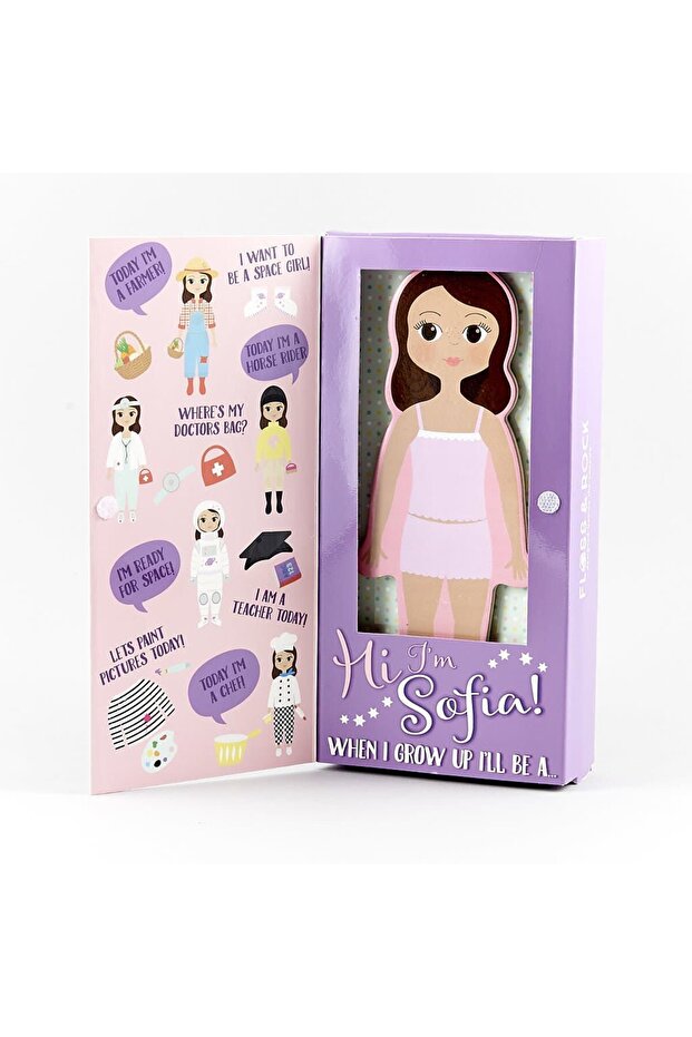 Floss & Rock Mıknatıslı Giydirme Setinin karakteri Sofia çok meraklı ve ileride olabileceği astronot, çiftçi, sanatçı, hemşire ve daha birçok mesleği hayal ediyor.