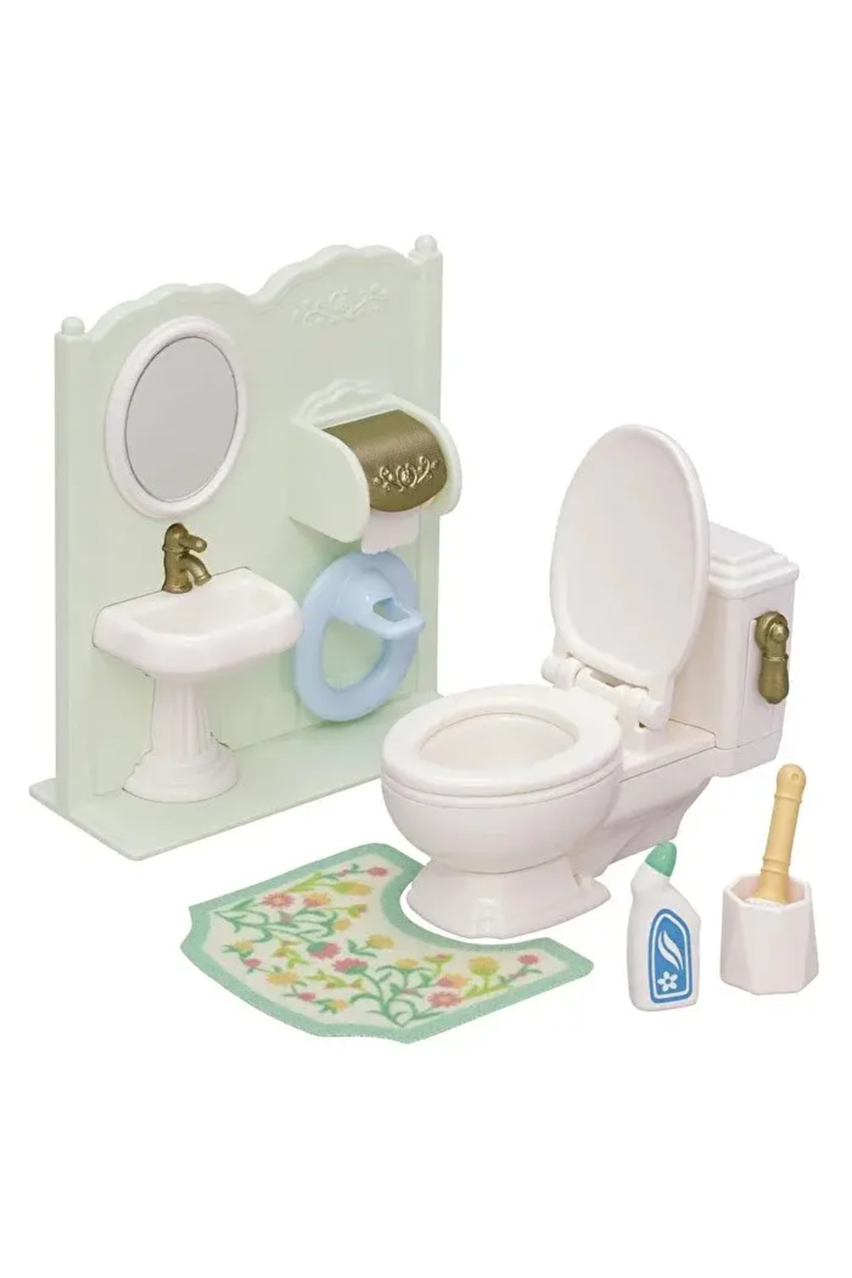 Tuvalet Seti, klozet, lavabo, temizlik ürünleri, lazımlık ve tuvalet paspasından oluşur.