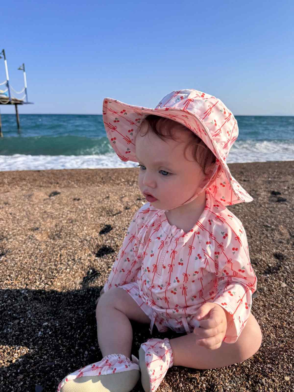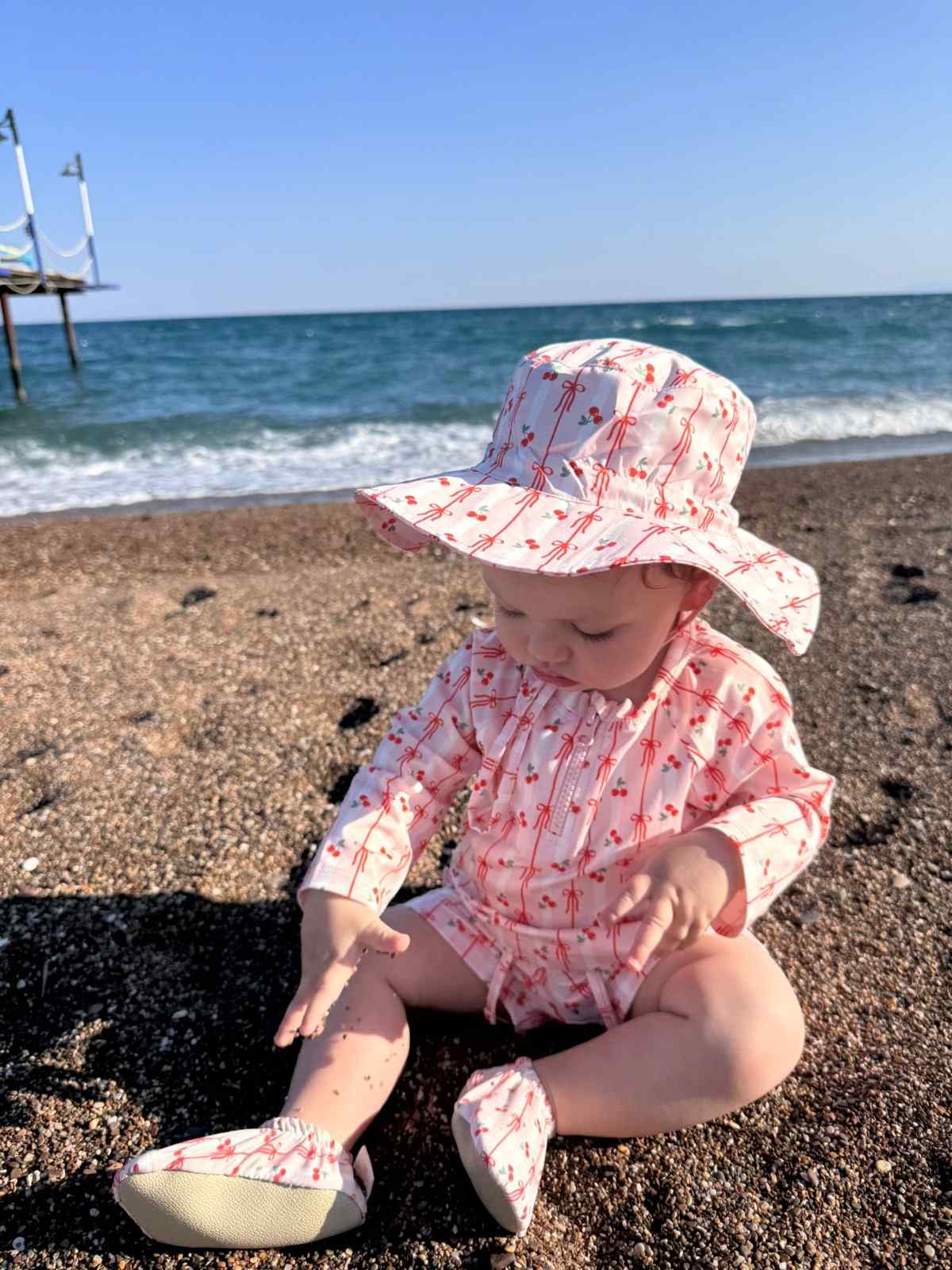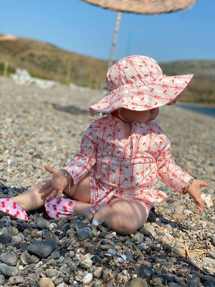 Uzun kollu önden fermuarlı UV korumalı üst ve fırfırlı model külot mayo sete dahildir.
