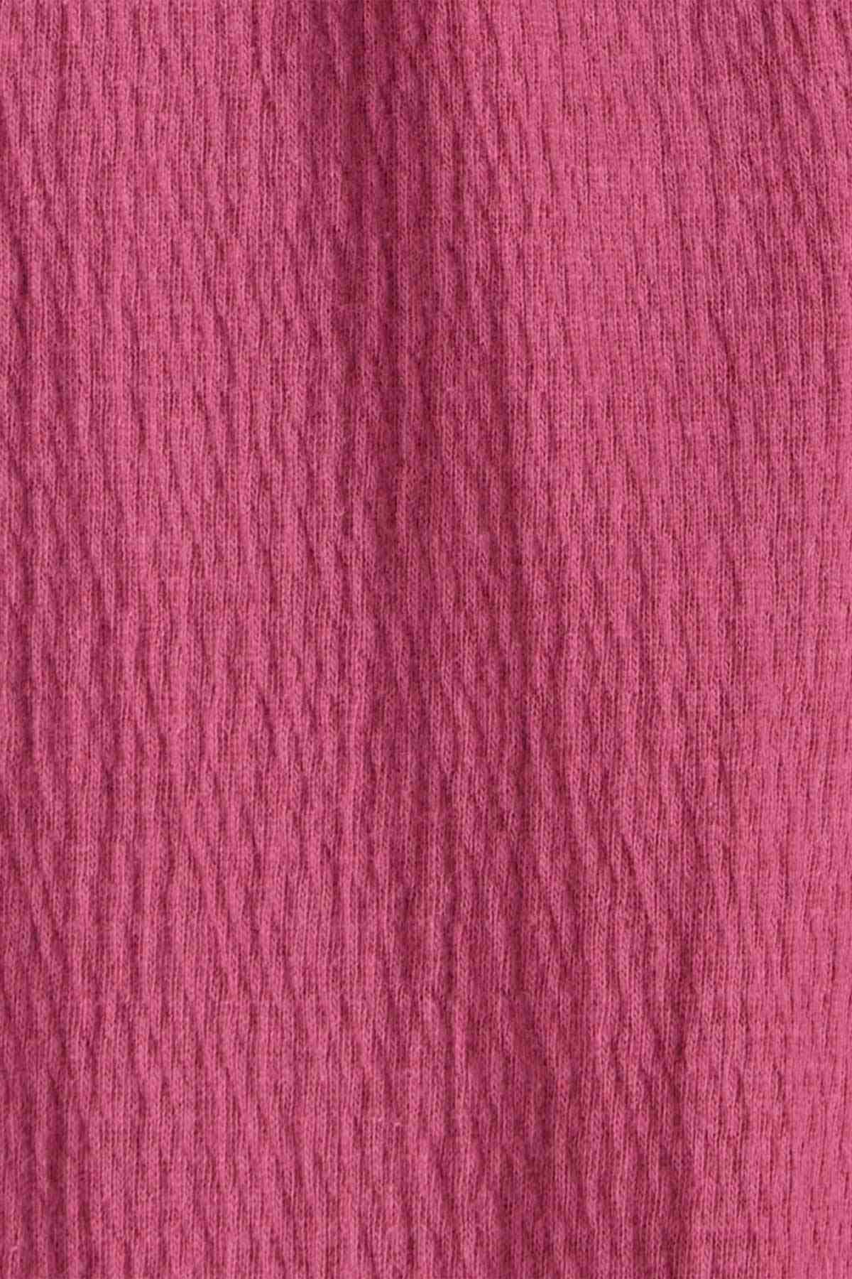Canlı fuşya rengindeki dokulu pantolonla tamamlanan takım, sabah stresi yaratmadan şık bir görünüm sunar