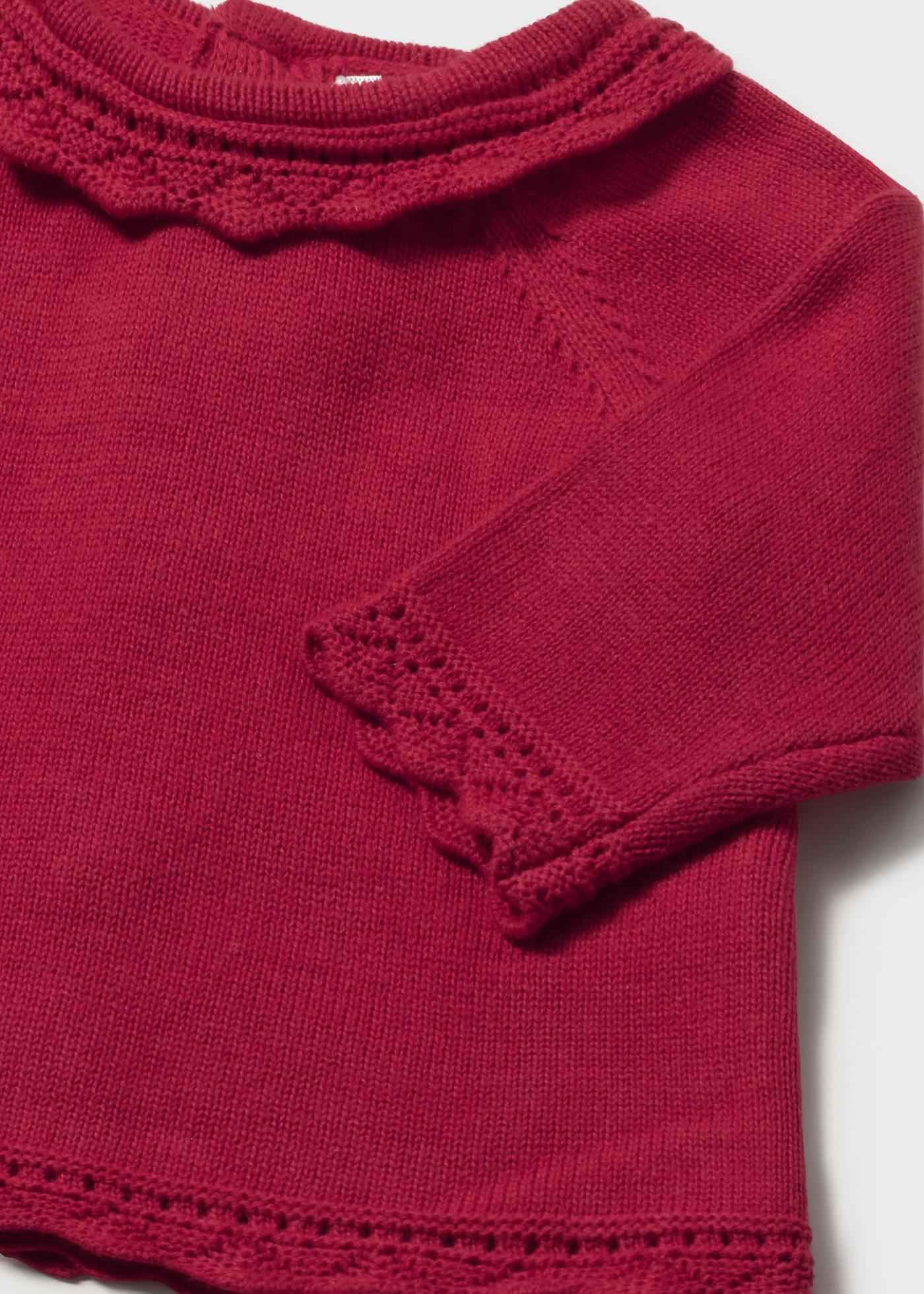 Yenidoğan kız bebek için uzun kollu kazak aynı renk detaylara sahip yuvarlak yakası ve giysinin kolayca giyilip çıkarılmasını sağlayan arka kısımda düğmeler.