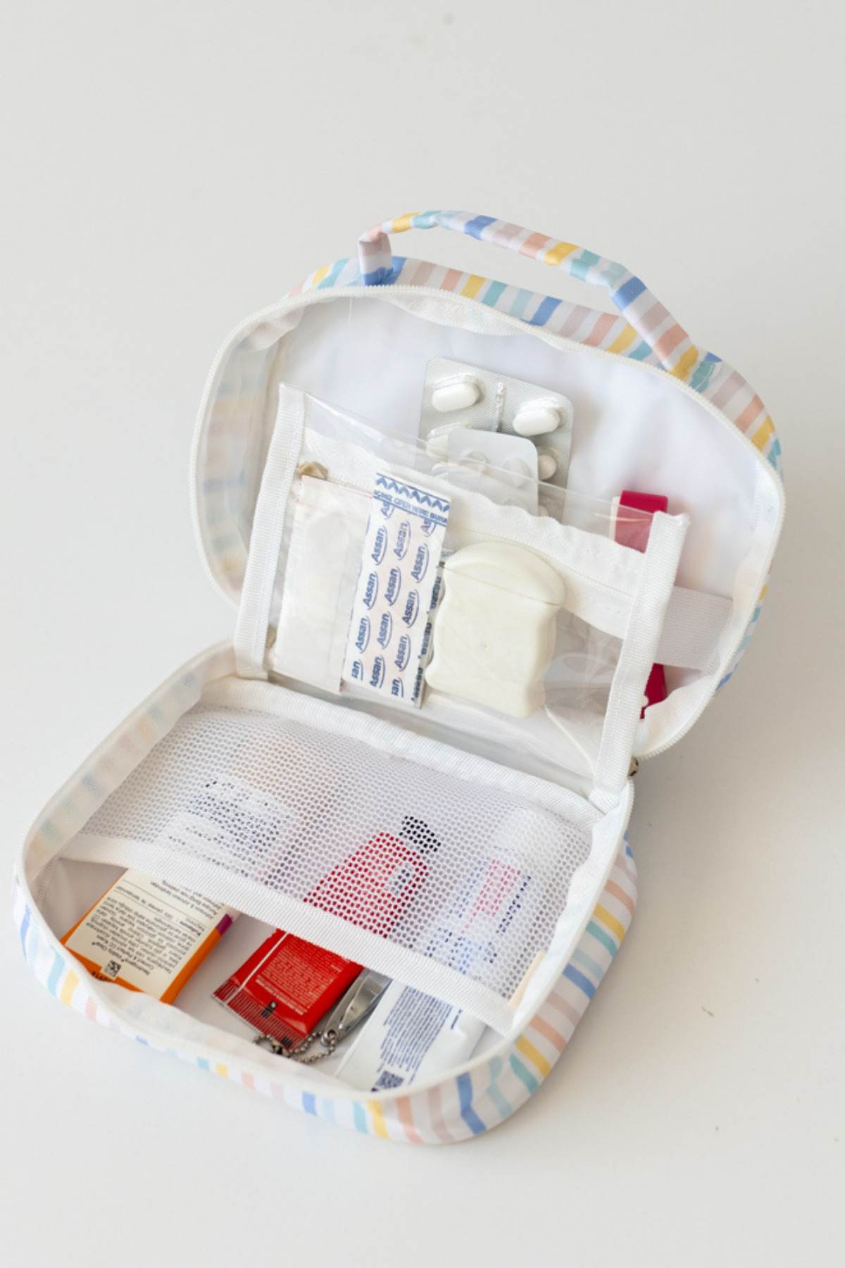 🧴 Şeffaf fermuarlı göz – Hap ve küçük eşyaları kolayca bulmanızı sağlar.