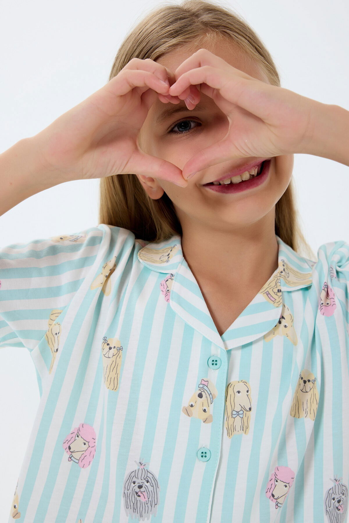 • Önden Düğmeli Minik Kalpler Pijama Takım 2-15 Yaş