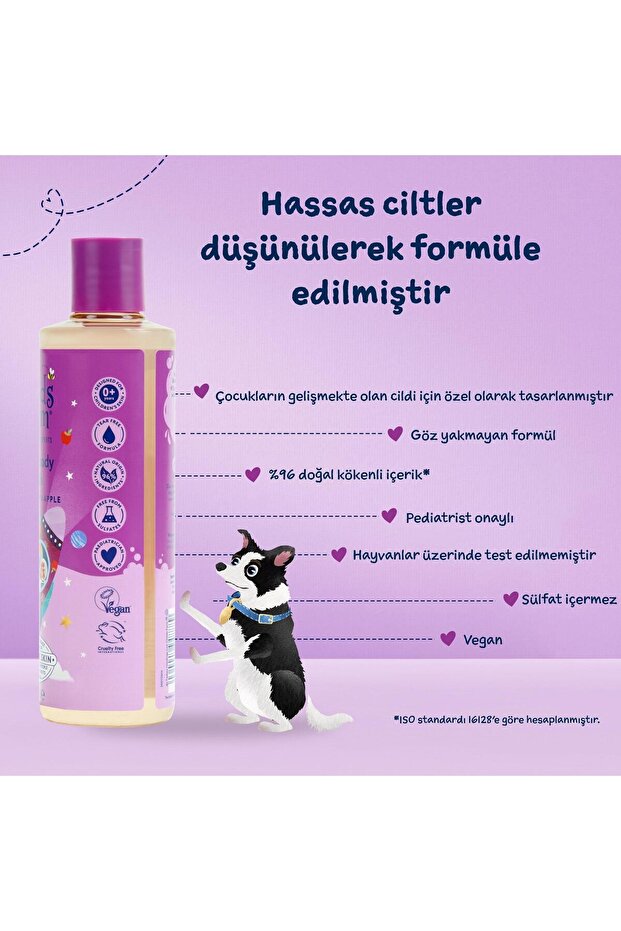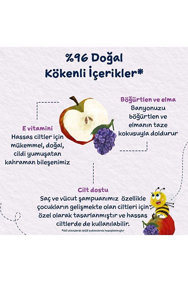 Hassas ciltler için özel olarak geliştirilmiş, çocukların saç ve vücut bakımı için ideal bir üründür.