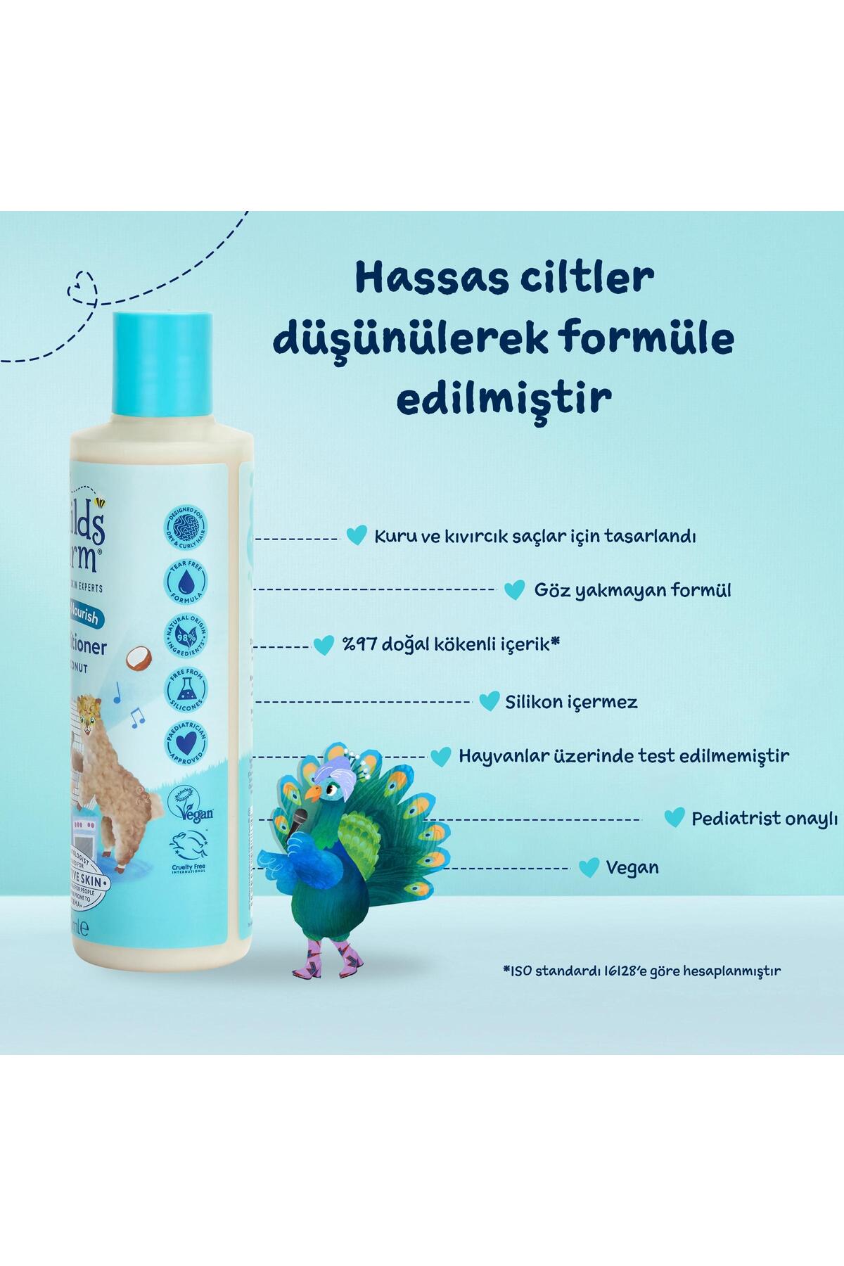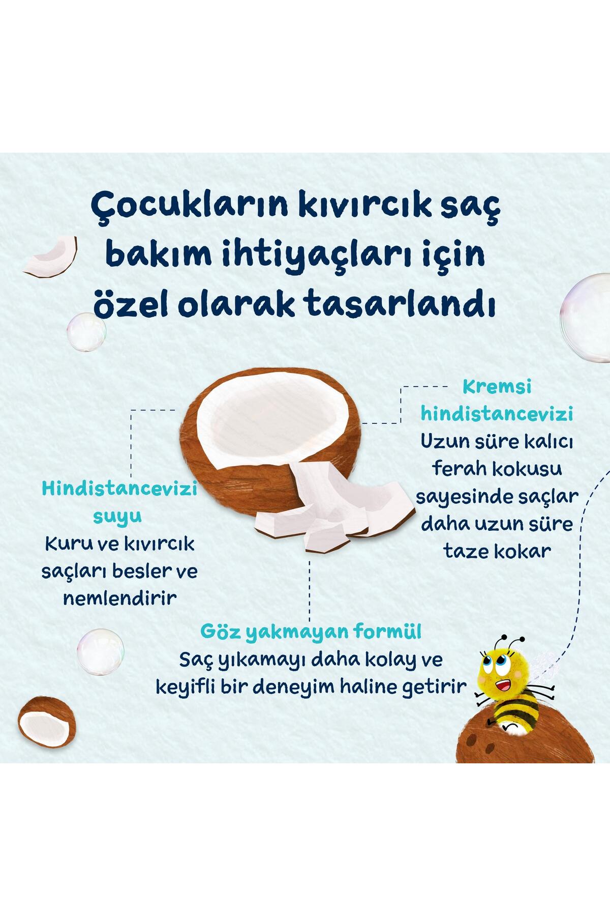 Kuru ve kıvırcık çocuk saçları için özel olarak geliştirilmiş bu saç kremi, hindistancevizi yağı ve hindistancevizi suyu içeren formülü sayesinde saçları derinlemesine besler ve daha kolay şekil almasını sağlar.