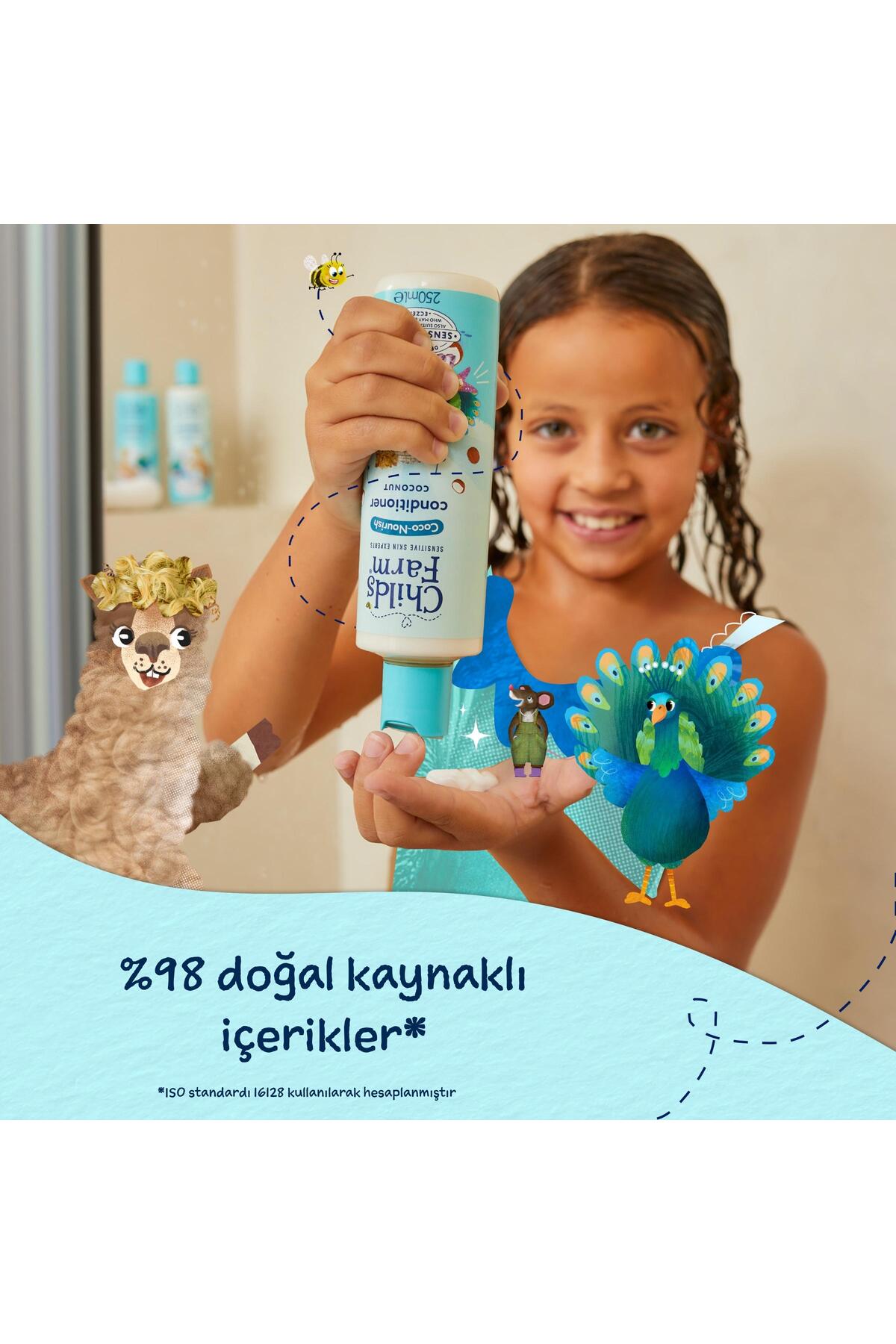 Hindistancevizi yağı ve suyu ile zenginleştirilmiştir; saçta kalıcı nem ve kolay taranabilirdik sağlar.