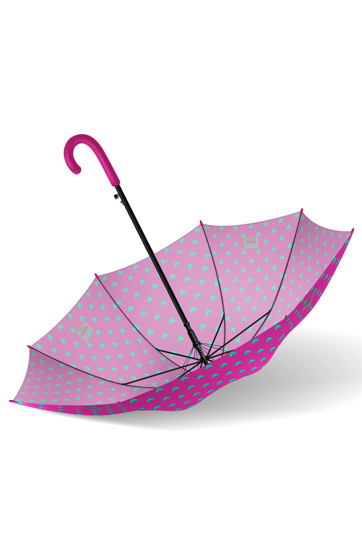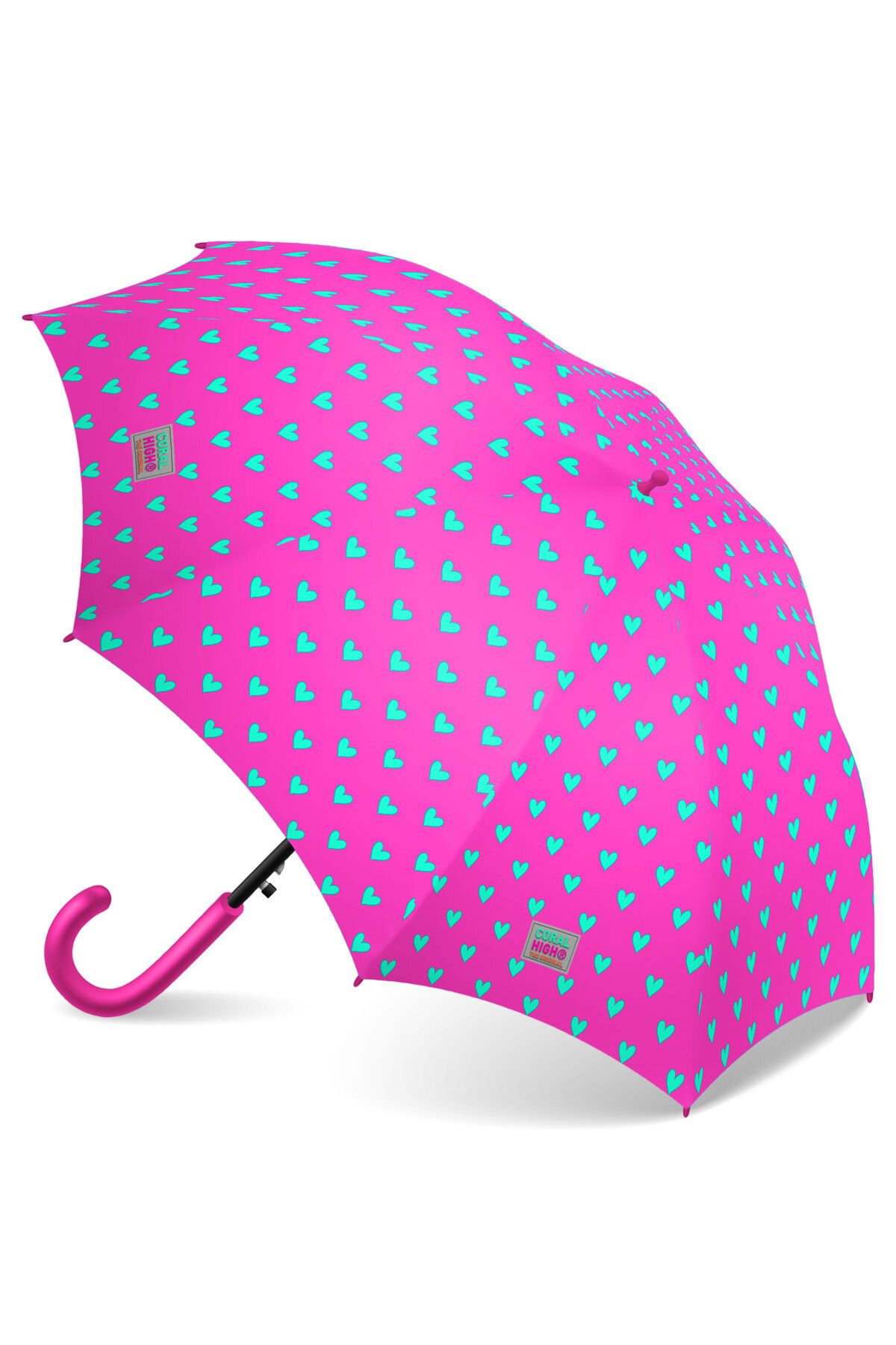 • Coral High Neon Pembe Su Yeşili Kalp Desenli Çocuk Şemsiyesi