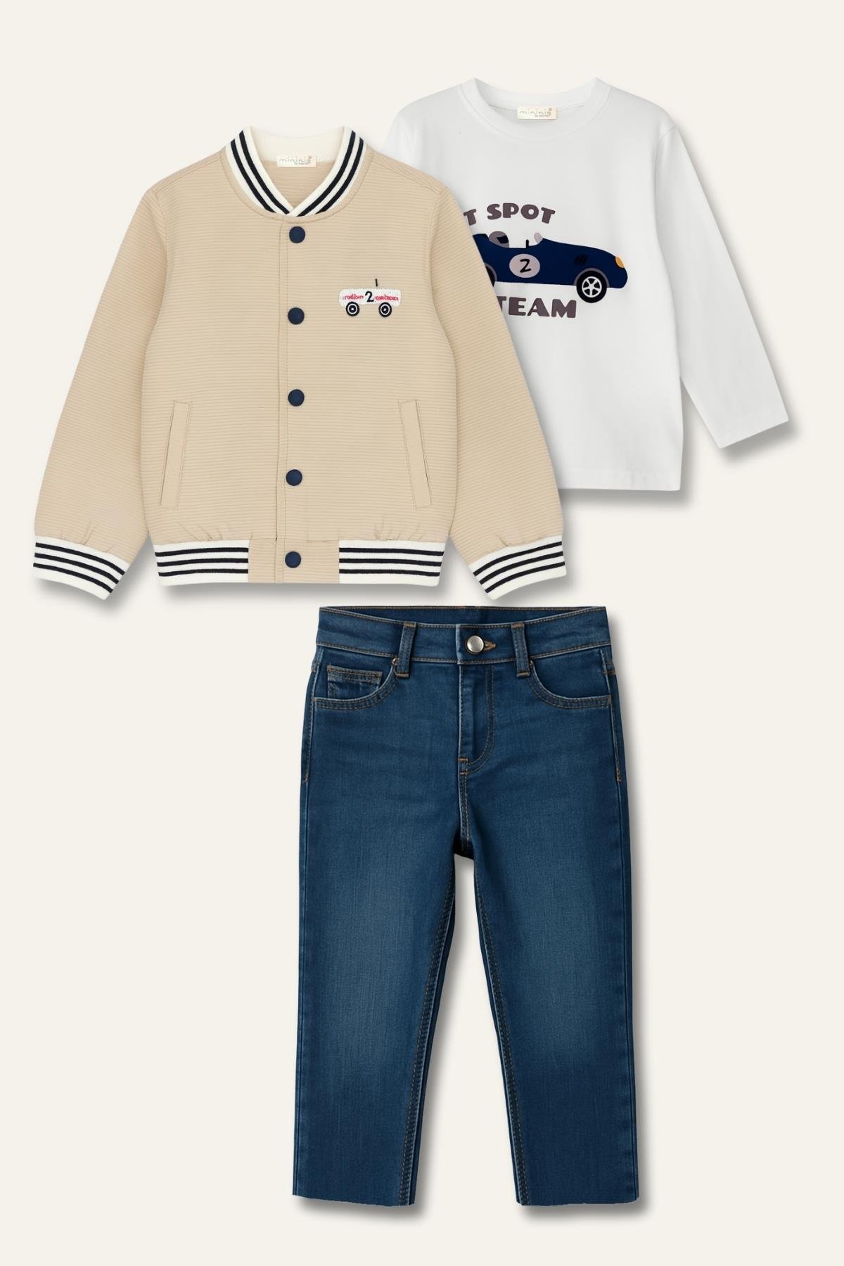Araba Temalı Montlu 3 Lü Denim Takım 3-7 Yaş