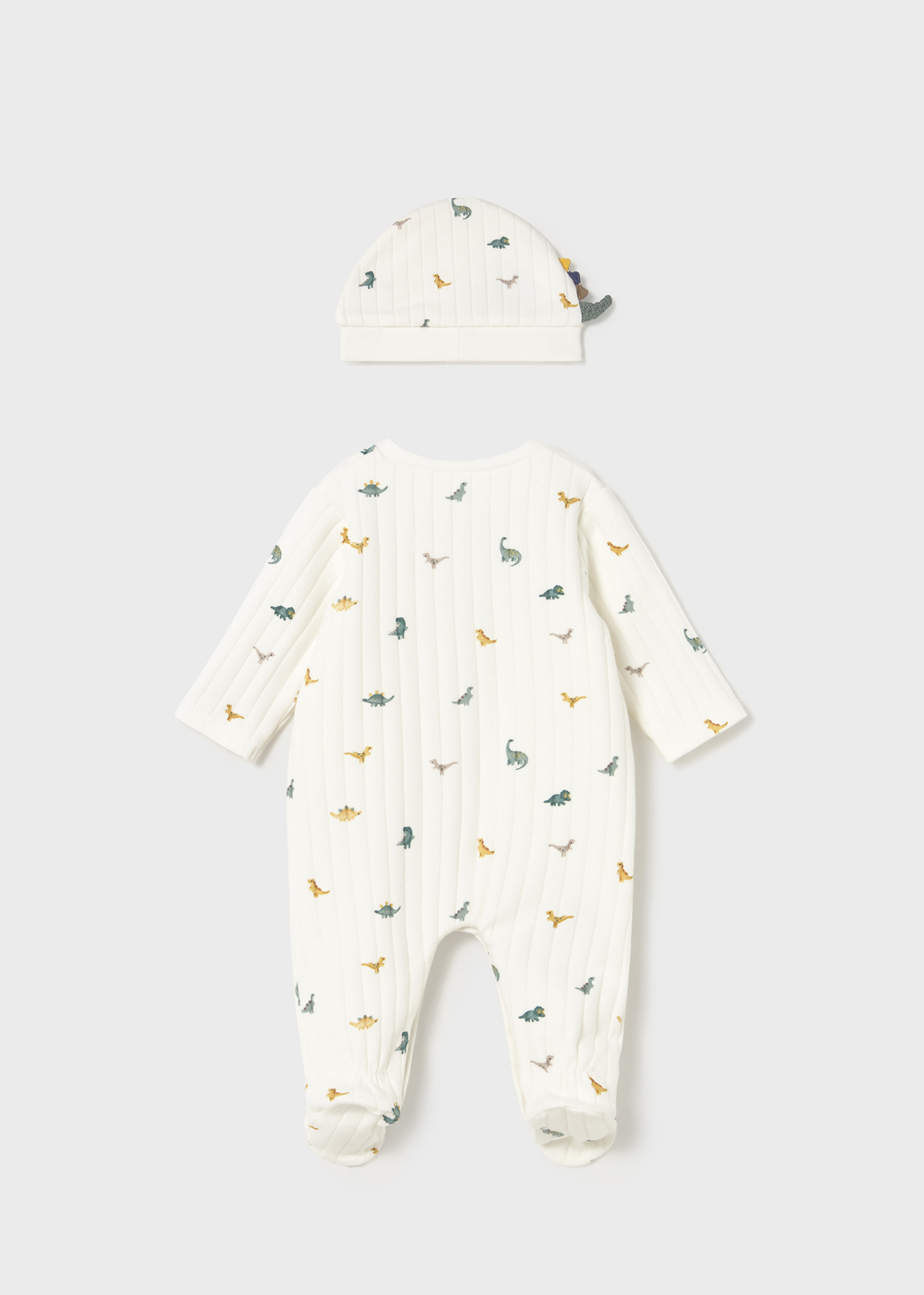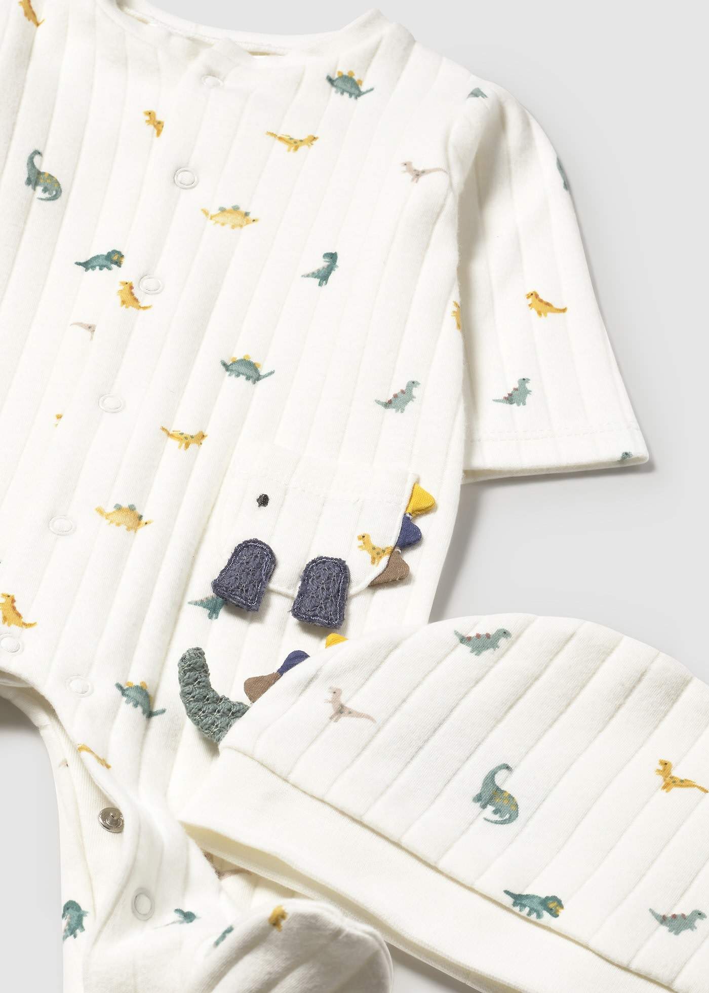 Yenidoğan erkek bebek için uzun kollu tek parça. Ayaklı. Önde çıtçıtlı. Kolay giydirme için ağ kısmında çıtçıtlı.