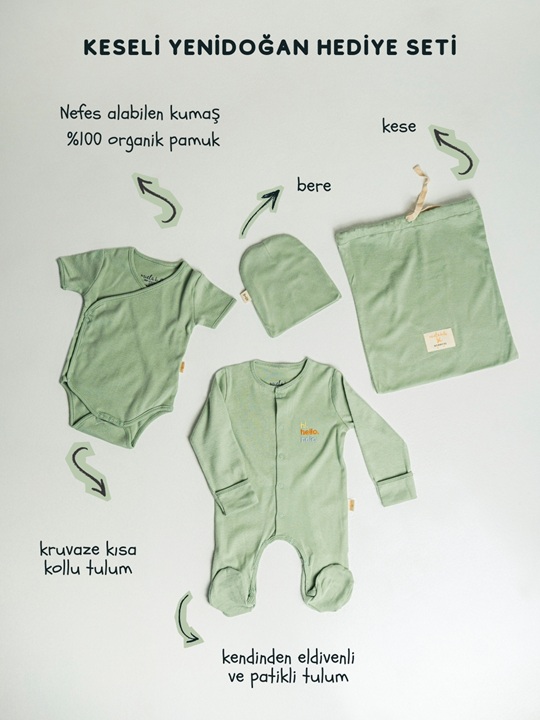 Takım içeriğinde iki ürün mevcuttur; Ayarlanabilir çıtçıtlı body ve yumuşacık pantolon.