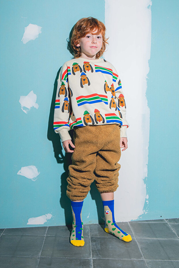 Mutlu bir köpek şeklindeki bu sevimli çoraplar, minik ayakları tüm gün sıcak ve neşeli tutar.