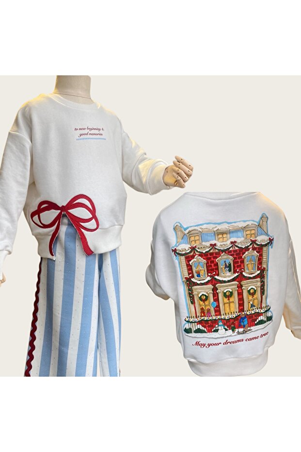%100 Pamuk 3 İplik Şardonsuz Kumaş, Sweatshirtte Yırtmaçlı Nakış Detayı, Arkada El Çizimi Özel Tasarım Baskı