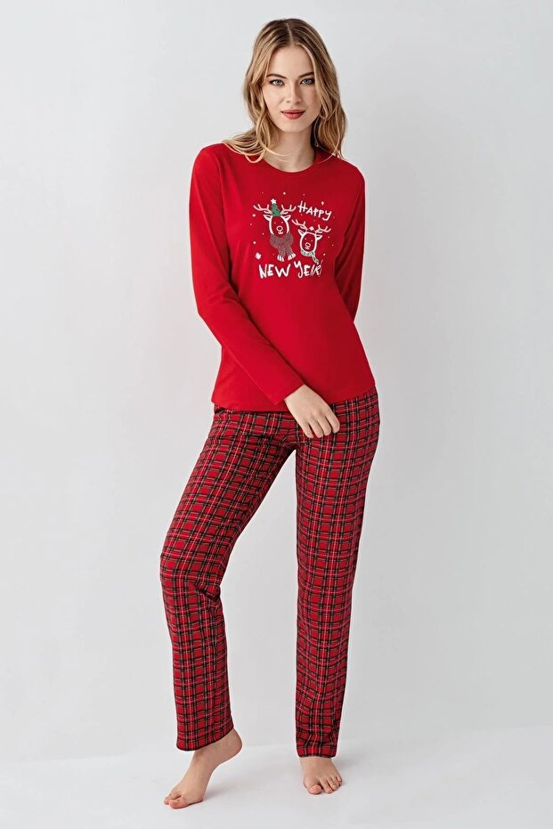 Happy New Year Geyik Kafa Kırmızı Pijama Takımı S-XL Diğer Ürünler