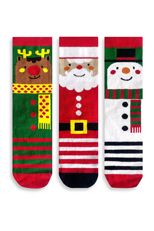 Hediye kutusu içinde 3 adet unisex yılbaşı temalı çorap bulunmaktadır.