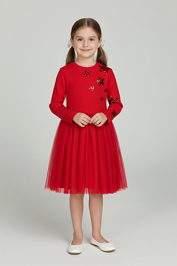 Çocuklar için özel olarak tasarlanmış, yıldız işlemeli pamuklu tütü elbise ile şıklığı ve rahatlığı bir arada sunar.